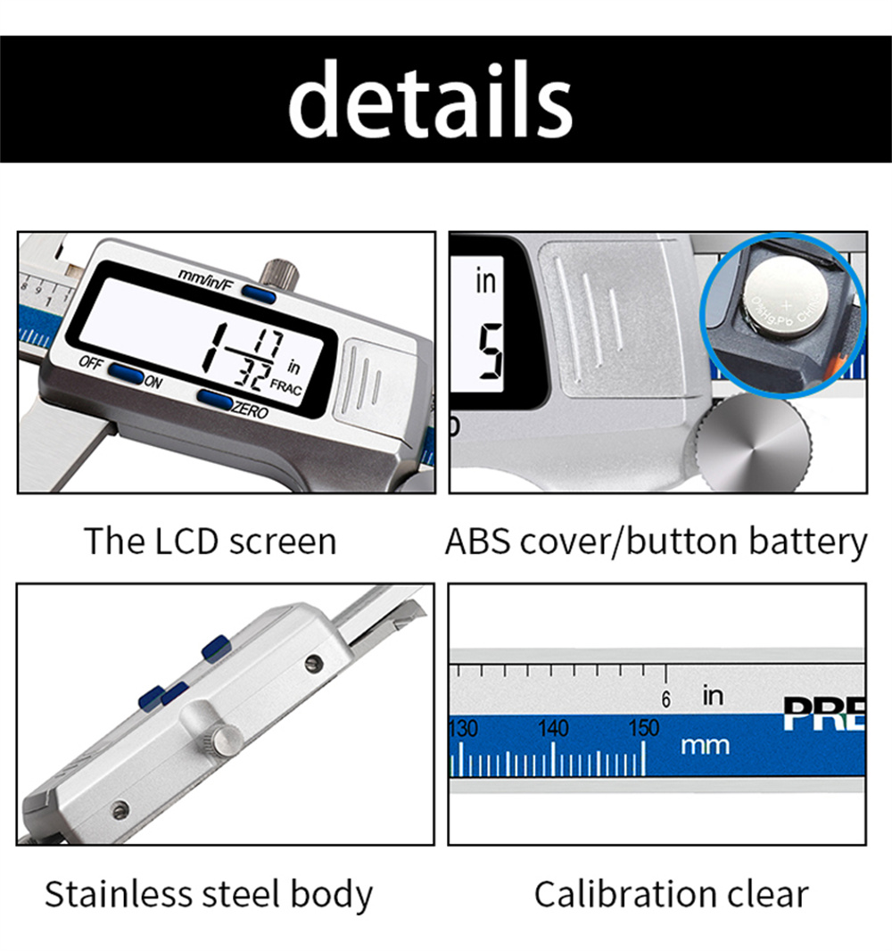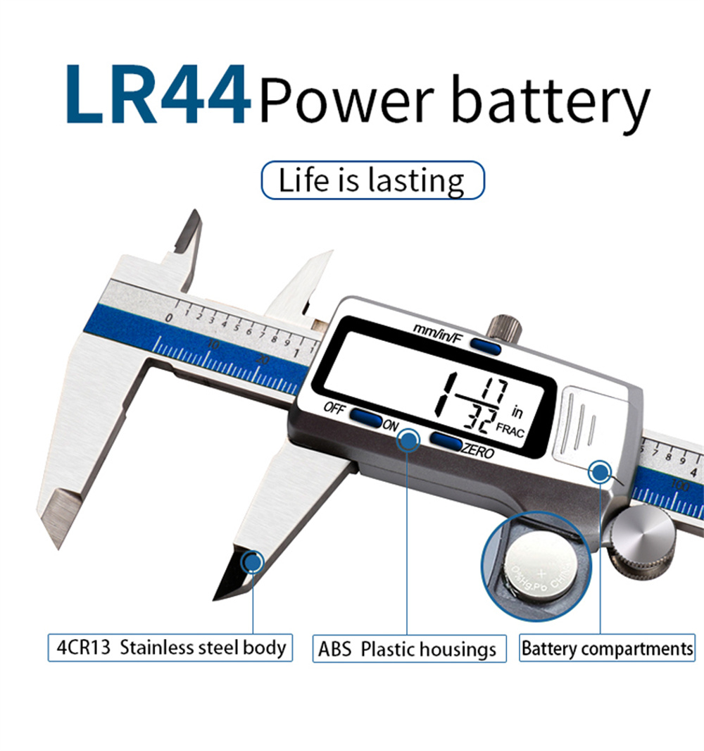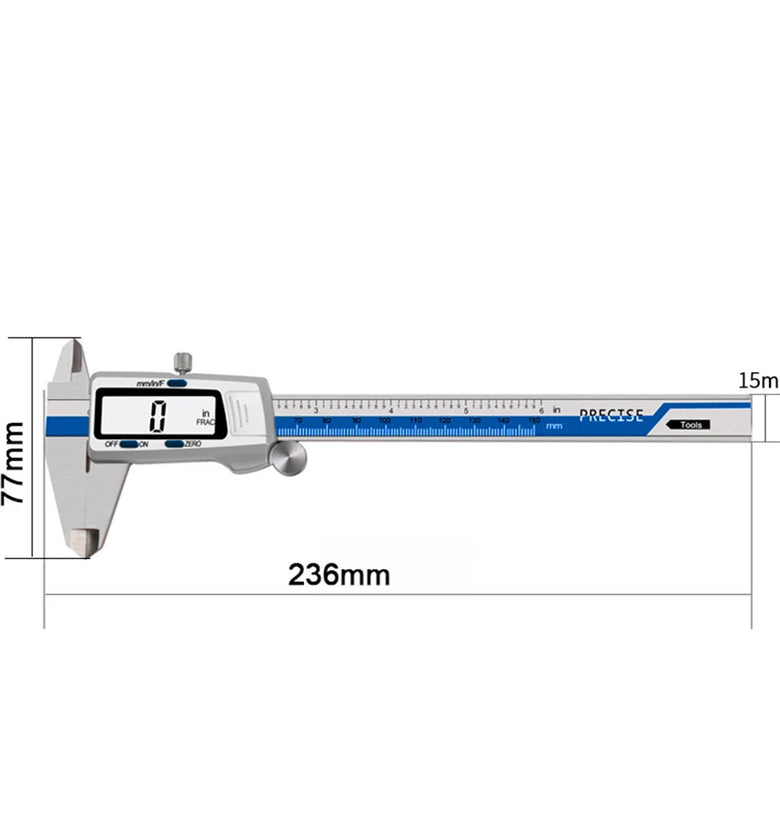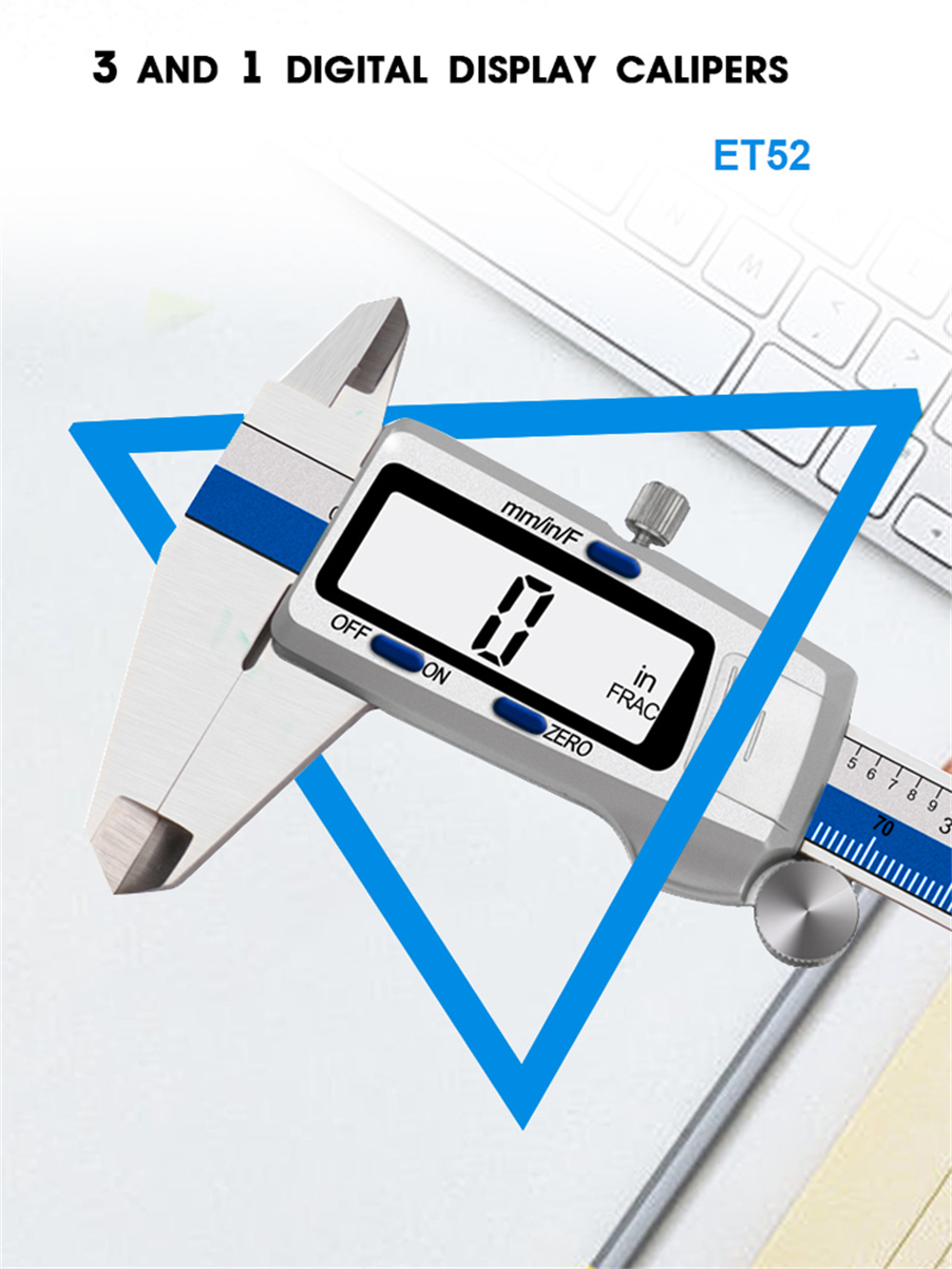 • ET52 Stainless Steel Caliper Measuring Tool Digital Precision Caliper with Magnetic Stripe Sticker Technology 0.01-150mm Range Large LCD Display Automatic On/Off function LR44 Button Battery Included