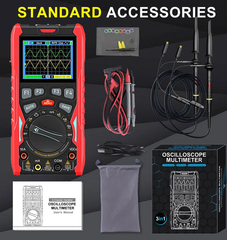 Functions: 3-in-1 multifunction device (oscilloscope, multimeter, signal generator)