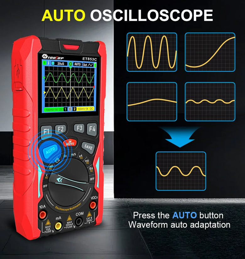 Combines three critical tools—oscilloscope, multimeter, and signal generator—into one compact device that meets diverse diagnosing and testing needs.