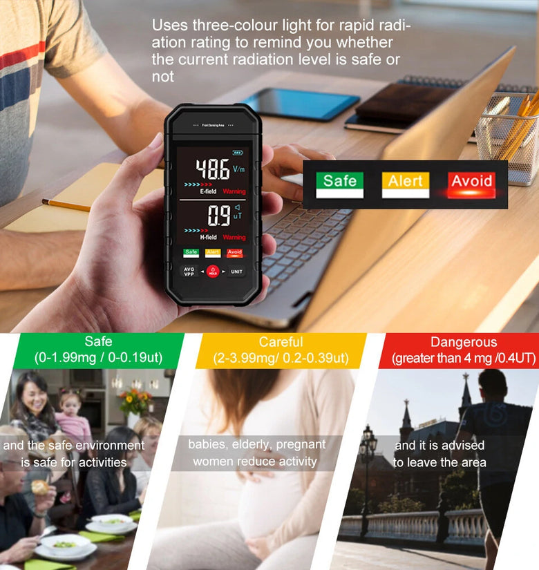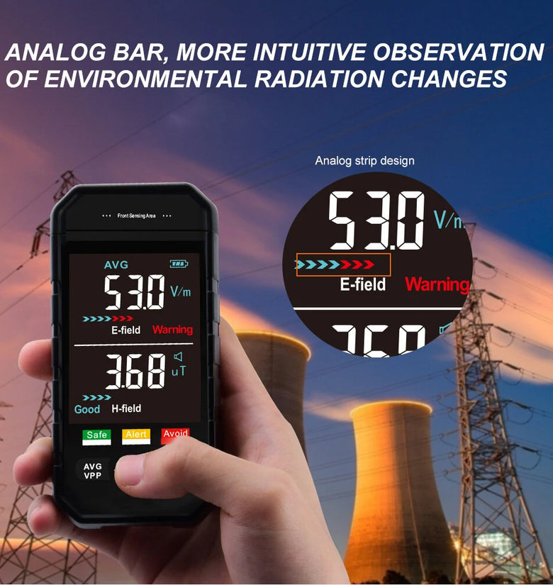 Prompt Alerts for Immediate Action: The device promptly warns users whenever the electric field surpasses the safety threshold (40V/m). This feature not only helps in immediate identification of hazardous zones but also in ensuring that one can quickly move away from potentially harmful areas.