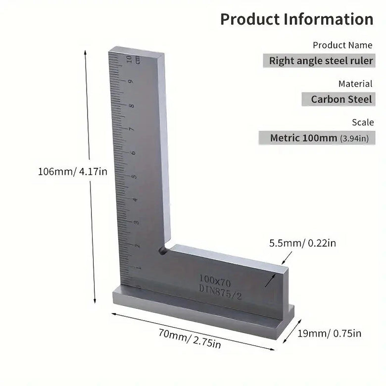 • ETOPOO 100x70mm Machinist Engineer Square 90 Degree Right Angle Ruler with Seat Woodworking Scribing Ruler for Precision Layout and Measurement Work