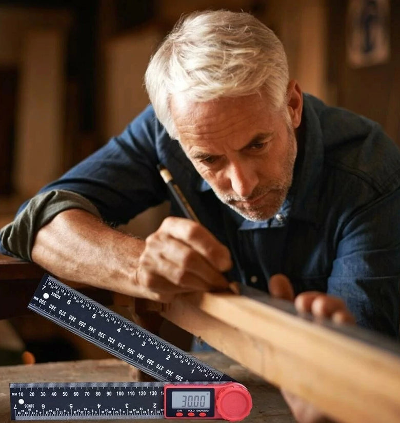 • ETOPOO 200mm/300mm 360 LCD Display Carbon Fiber Digital Angle Ruler Inclinometer Electron Goniometer Protractor Angle Finder Meter Measuring Tool