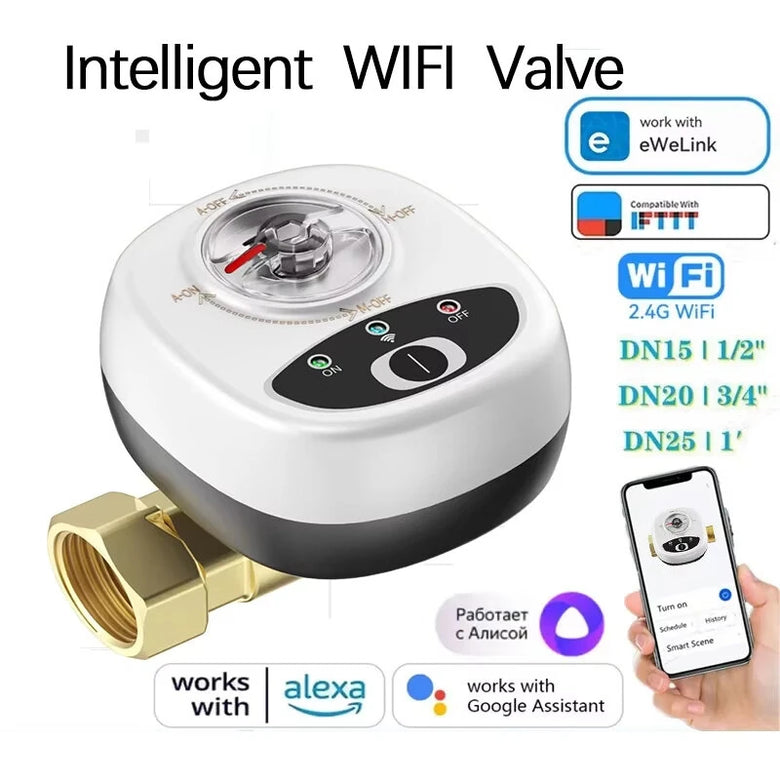 • eWelink APP WiFi Smart Valve Water Gas Shutoff Automated Ball Valve DN15/DN20/DN25 Wireless Control for Alexa GoogleAlice