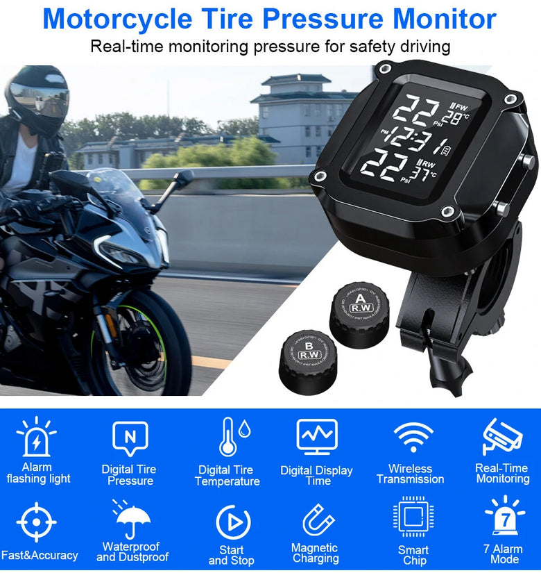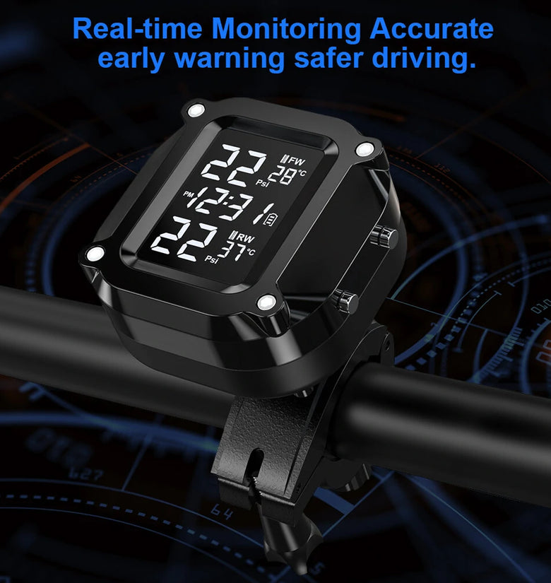 • Extractme Wireless TPMS Motorcycle Tyre Temperature Alarm Sensor USB Charging LCD Display Tire Pressure Monitoring System