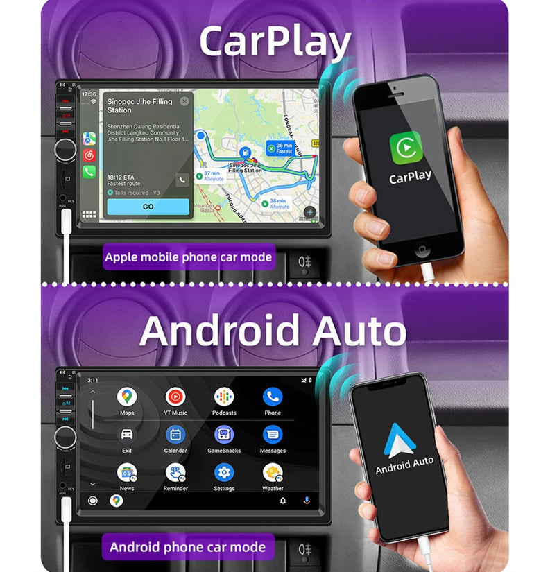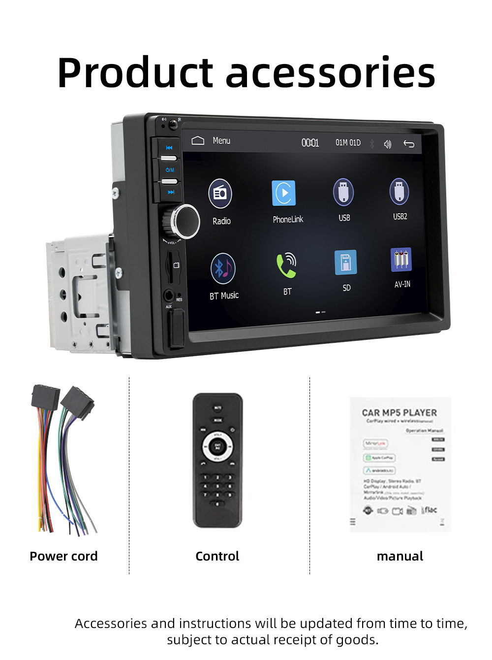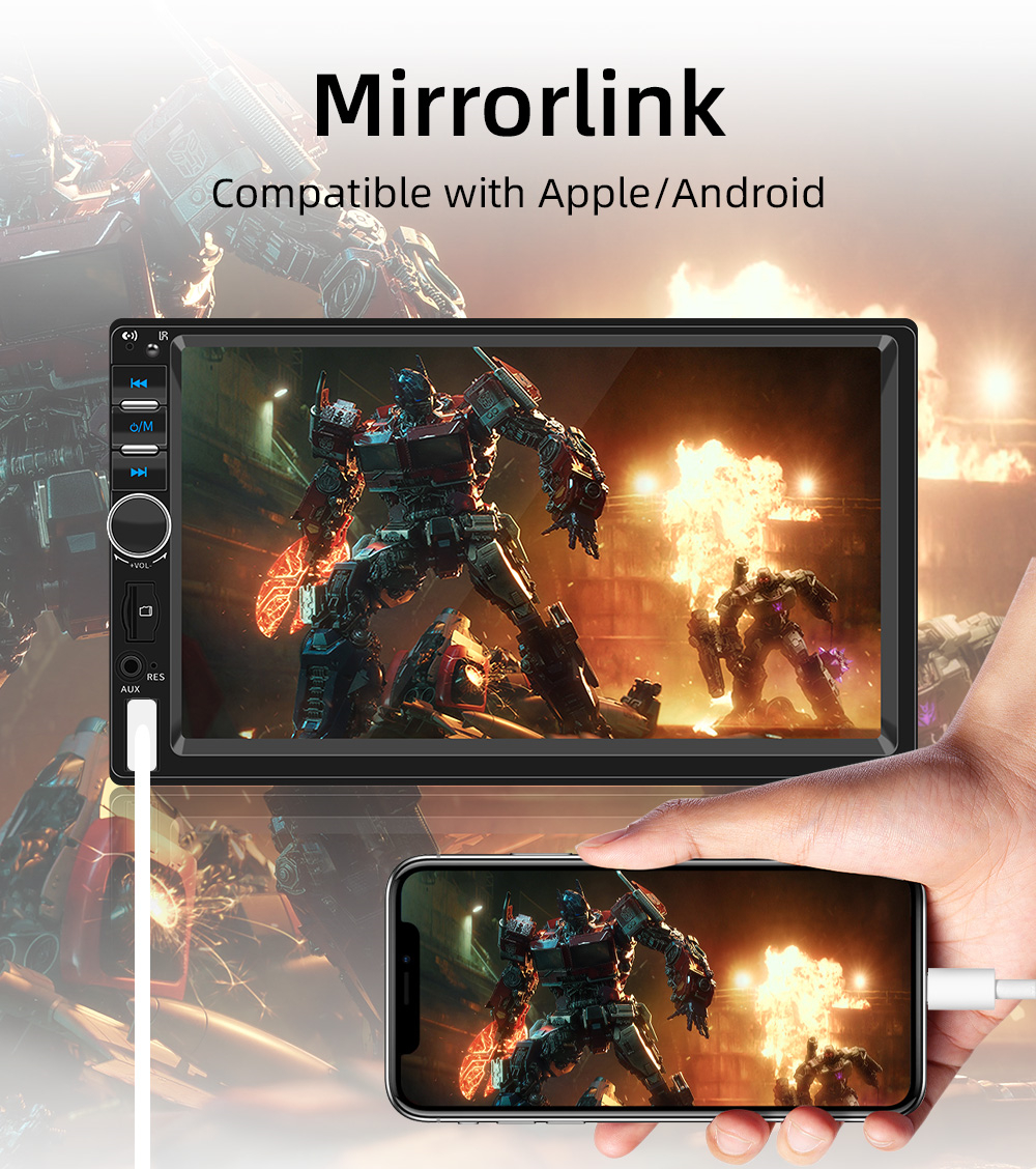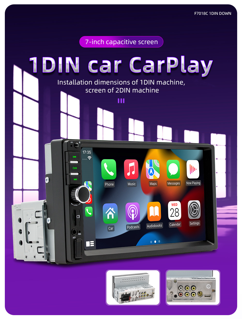 • F7018C 7 Inch Touch Screen Single 1DIN MP5 Car Navigation System USB Bluetooth FM Radio Android Auto Apple CarPlay