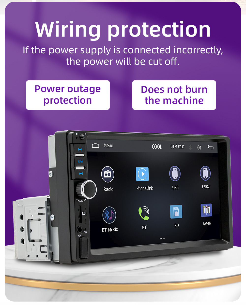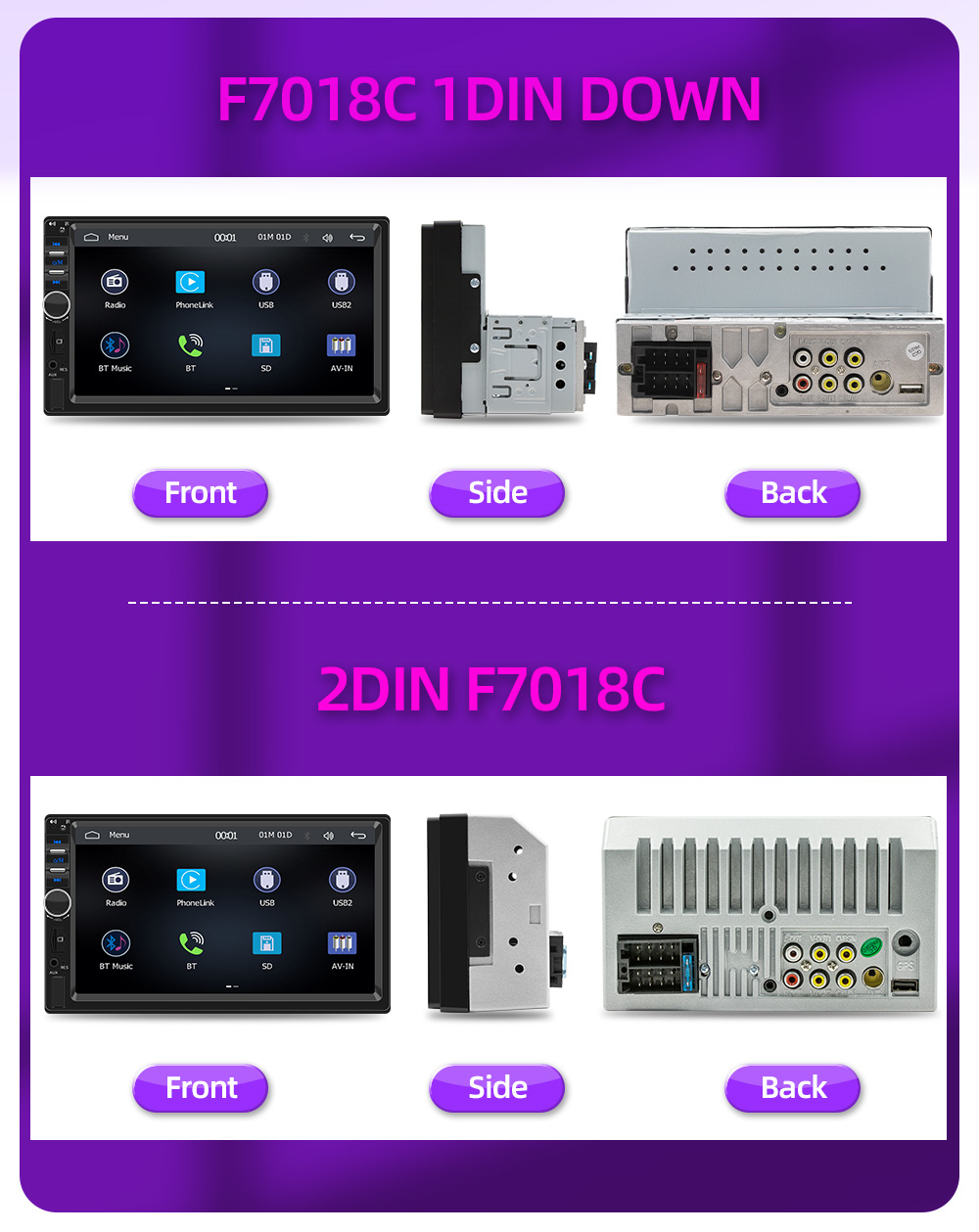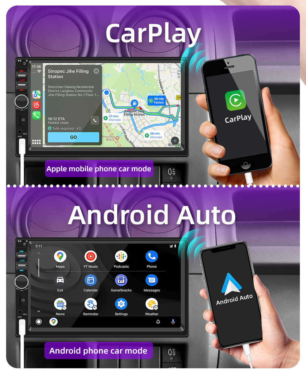 • F7018C 7 Inch Touch Screen Single 1DIN MP5 Car Navigation System USB Bluetooth FM Radio Android Auto Apple CarPlay
