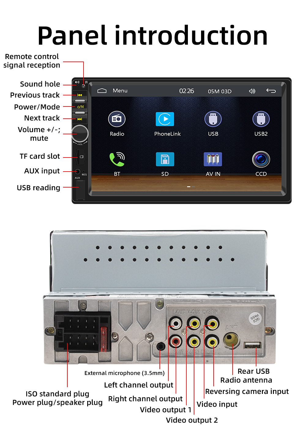 - USB and TF Card Integration: Supports memory devices for media playback and file access.