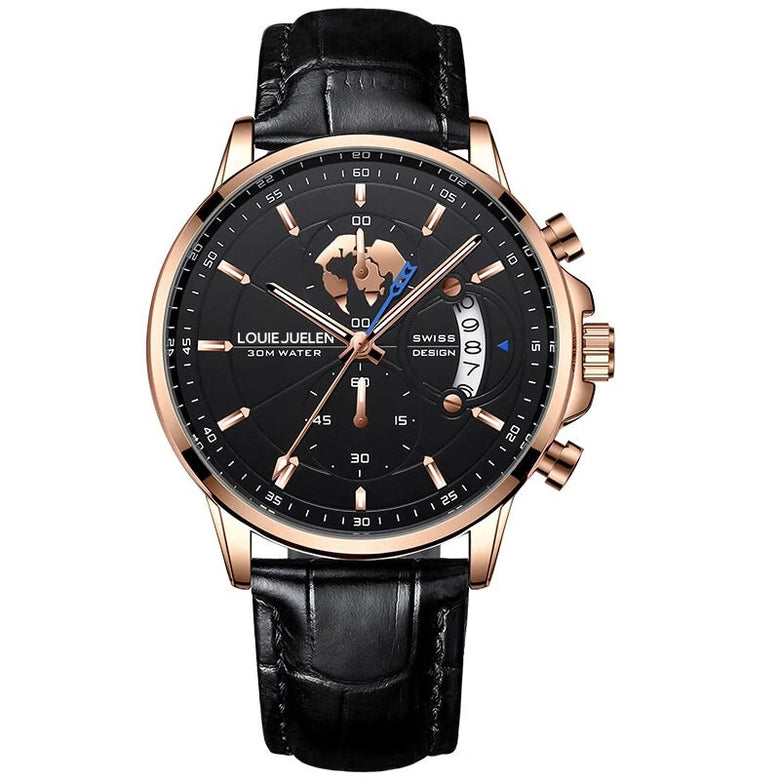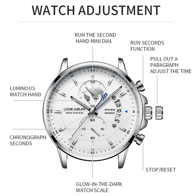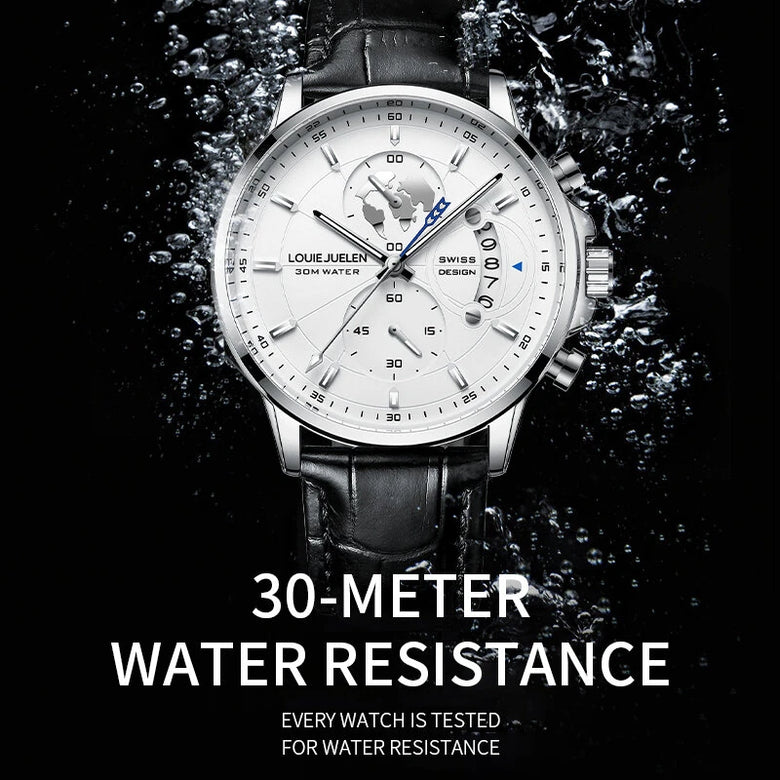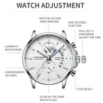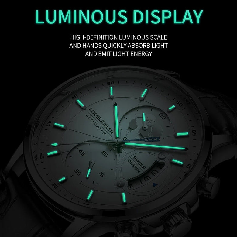 • Fashion Business Casual Men Quartz Watch Chronograph Leather Band Luminous Waterproof Date Calendar Men's Wristwatches