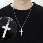 1. MATERIALS Men's Cross Necklace, Cross Pendant and Chain are made of high quality stainless steel, rust resistant and never tarnish. Lead-free and hypoallergenic, will not irritate sensitive skin. The gold cross necklace feels solid and medium weight, comfortable to wear.2. SIZE: Solid cross pendant is 31mm long and 17mm wide. The sides of the cross are highly polished and shiny. Cross chain is 18“” long and 2 mm wide. The gold cross necklace has smooth, sturdy edges and a flexible lobster claw clasp.3. CROSS NECKLACE: The silver stainless steel cross necklace is waterproof so you can wear it in the shower or while swimming. The cross necklace is comfortable to wear and the cross pendant matches perfectly with other necklaces.4. GREAT GIFT: Simple and stylish jewelry is perfect birthday gift, Valentine's Day gift, Christmas gift, cross jewelry, faith cross necklace, perfect cross necklace for both men and women.