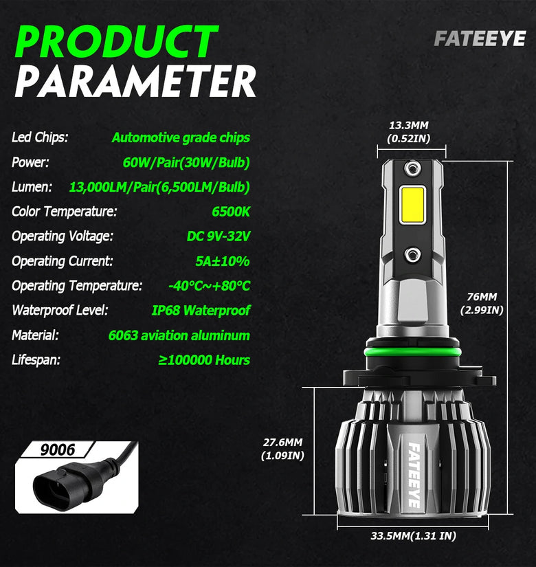-- Unmatched Brightness: With an astounding 13,000 Lumens per pair (6,500 Lumens per bulb), these LED Car Headlight Bulbs will light up the darkest nights. They are designed to enhance visibility and safety on the road, offering you superior illumination where and when you need it the most.