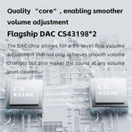 1. High-Quality Audio: Equipped with dual CS43198 DAC chips for superior sound quality and fine volume adjustment.