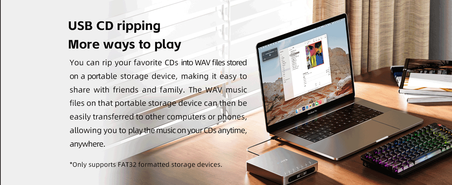 3. USB Ripping: Ripping your favorite CDs into WAV files for easy sharing and portability.