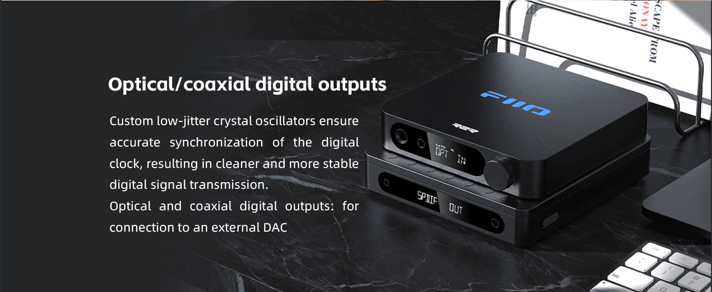 4. Versatile Connectivity: Supports 3.5mm, 4.4mm outputs, Optical, Coaxial digital outputs, enabling a wide range of audio setups.