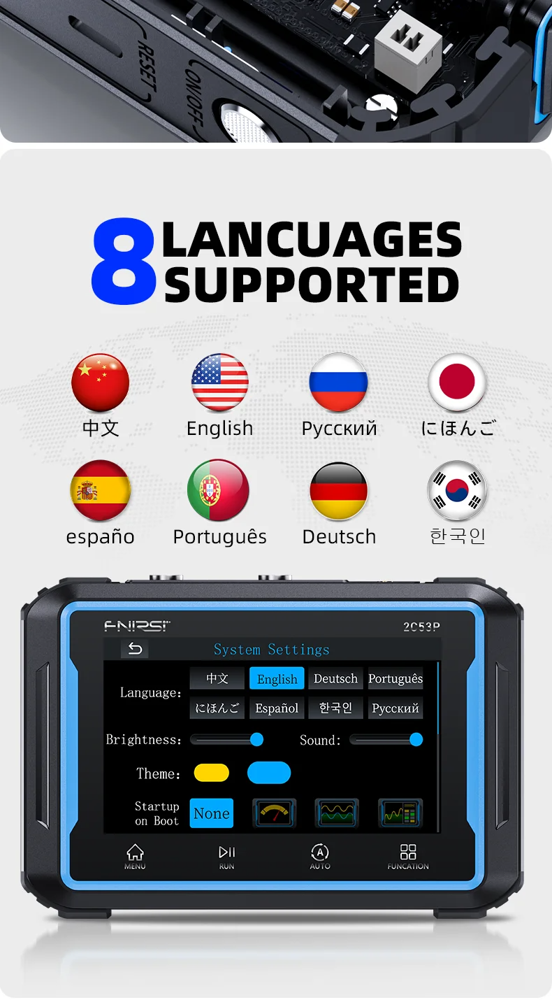 Language: Chinese, English, Pyccкий, にほんご, español, Português, Deutsch, 한국인