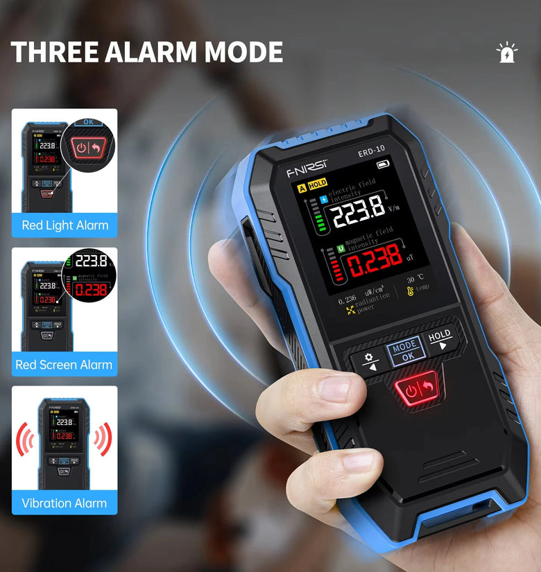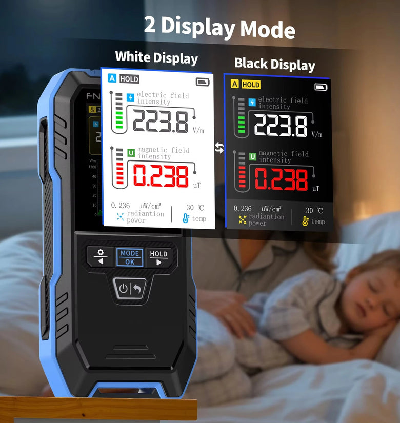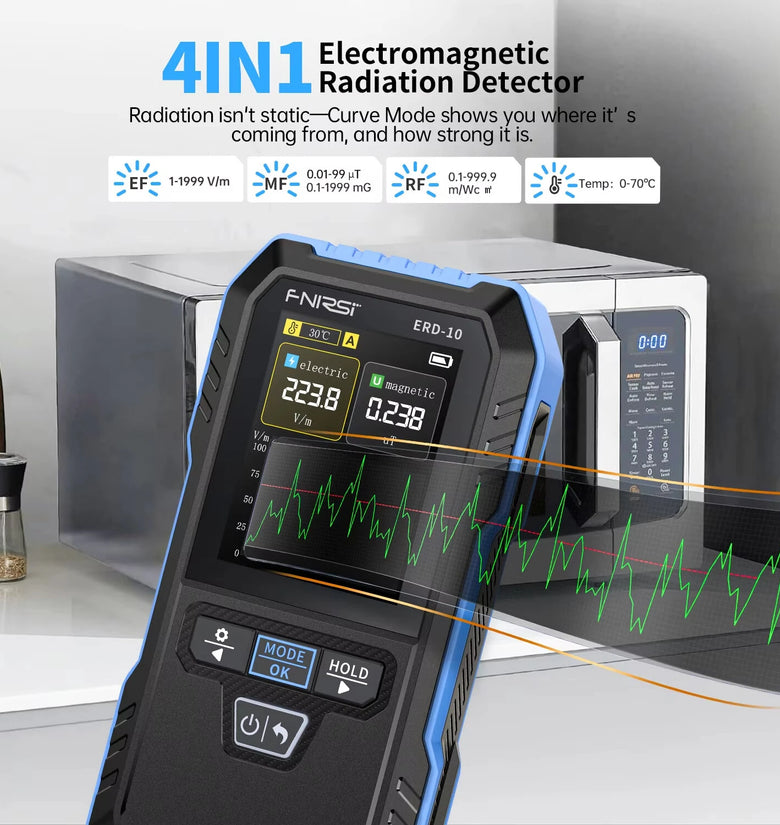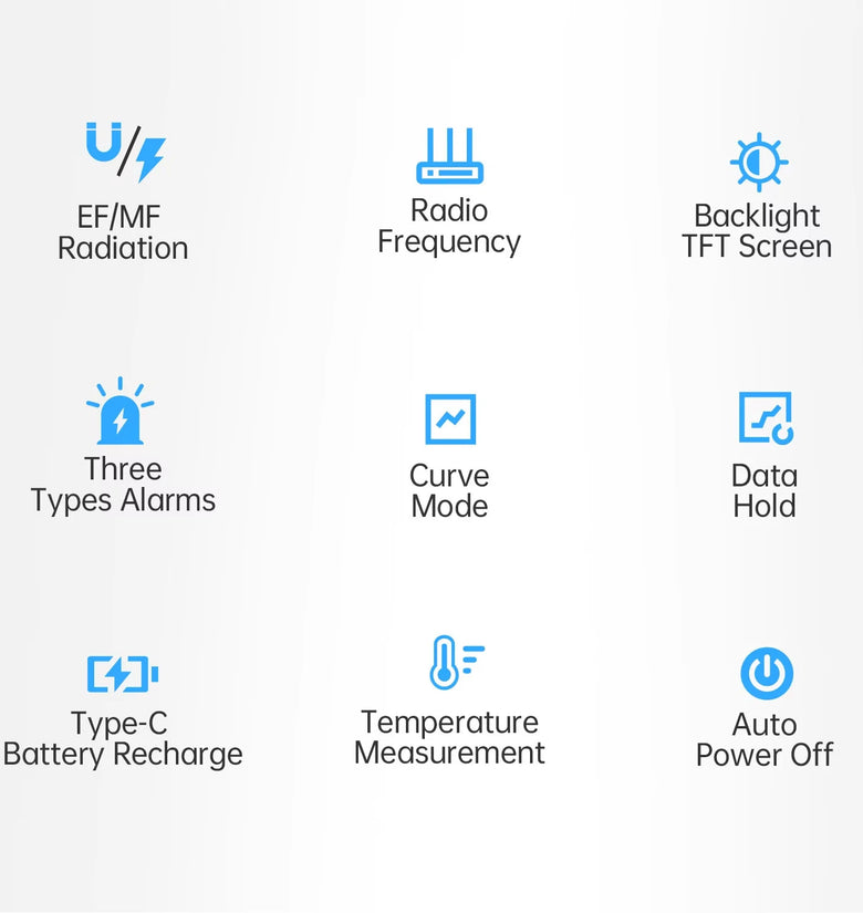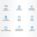 Covers electric fields, magnetic fields, RF radiation power, and environmental temperature, making it ideal for analyzing EMF levels in various settings such as homes, workplaces, vehicles, or outdoor environments.