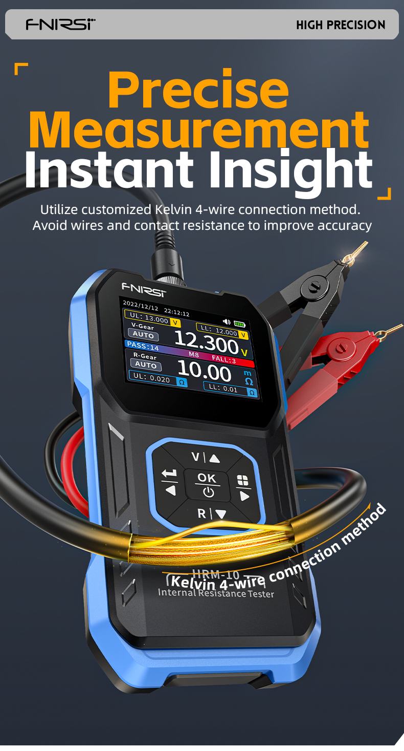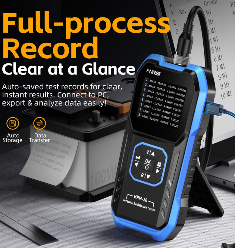 【Efficient & Accurate Measurement】: Utilizing a Kelvin 4-wire connection method, the HRM-10 ensures highly accurate internal resistance and voltage readings (0mΩ~200Ω, 0V~±100V), free from wire and contacting resistance interference. Its data retention and PC export capabilities allow for comprehensive recording and analysis of test results, enhancing efficiency and accuracy.