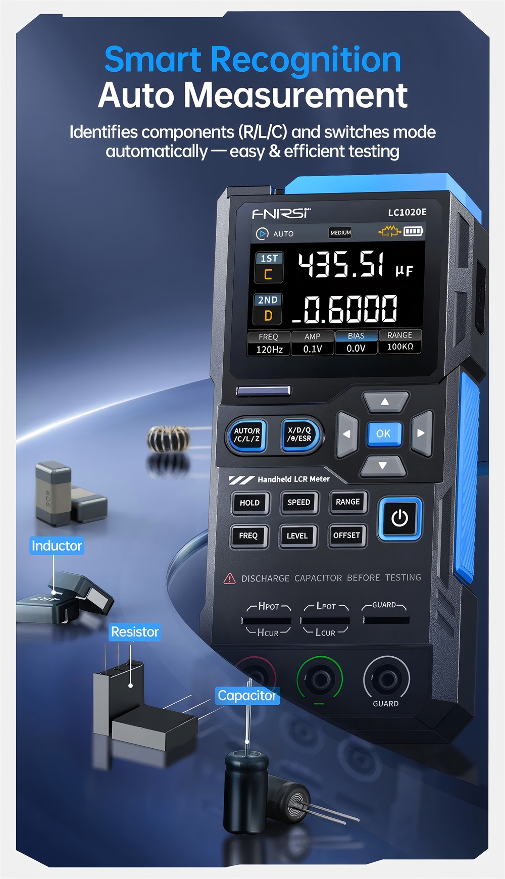 Measurement Parameters: AUTO/R/C/L/Z/X/D/Q/θ/ESR
