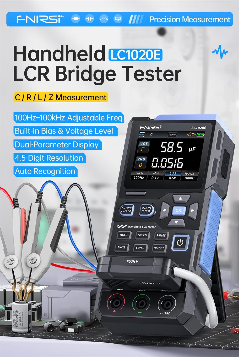 The LC1020E offers frequency settings from 100Hz to 100kHz, enabling versatile testing for components with different frequency-dependent behaviors.