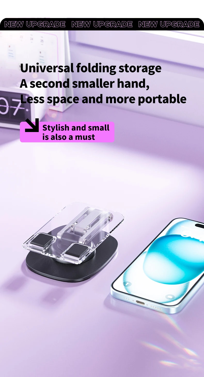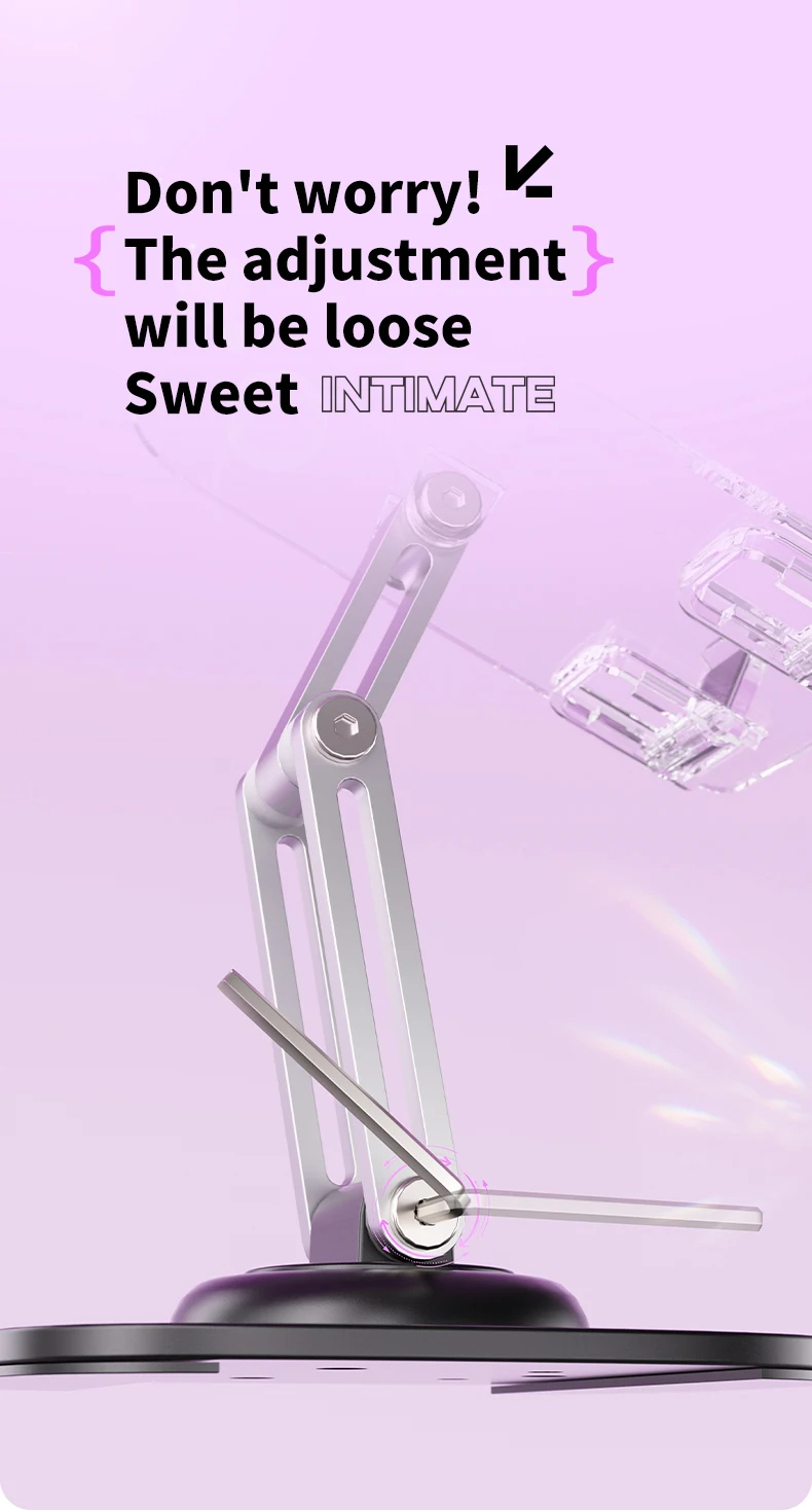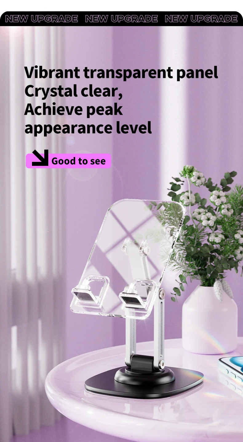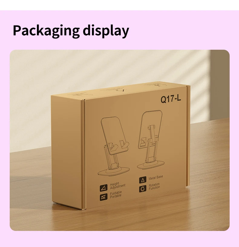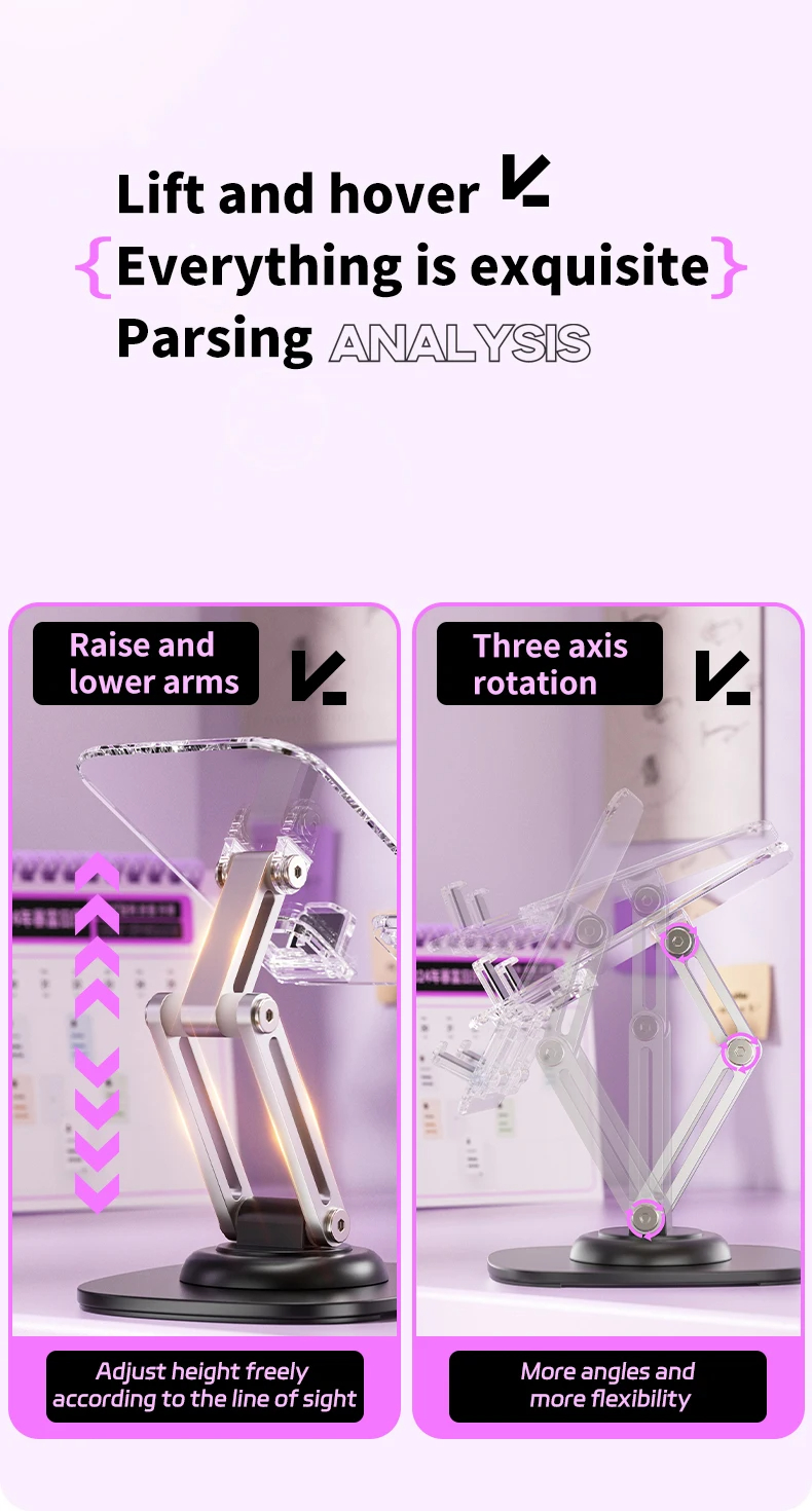 1. Metal desktop three-axis folding phone stand, 360° rotating metal chassis +AR ratchet rotating axis double linkage, bring silky rotation, with decompression sound effect.
