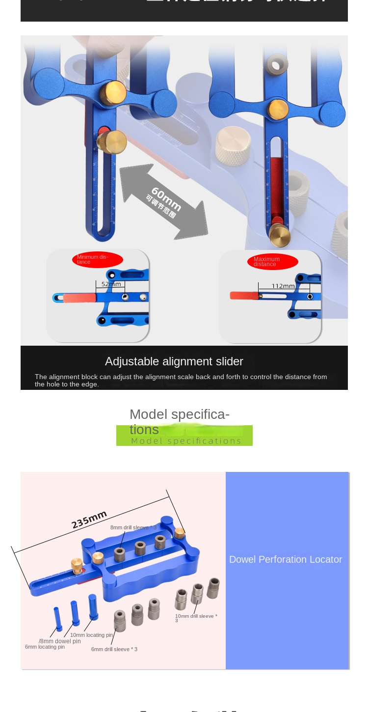 Adjustable Alignment: Easily adjust the slider to control the distance from the hole to the edge, with a range of 52mm to 112mm for versatility.