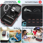 1. High Capacity Design: Dedicated slots for joycons, AC adapter, cables, and accessories; large storage compartment for organized transportation.