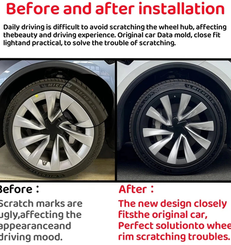 Attachment Method: Perfectly fit the original wheel hub, snap-in squeeze installation