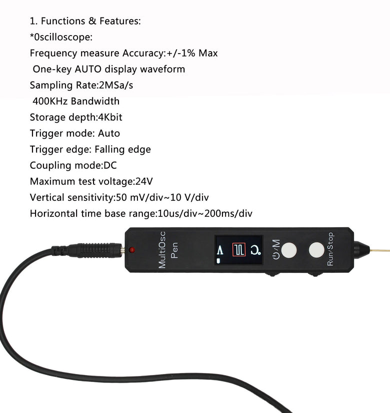 • Four-in-One Multifunctional Pen 2MSa/s Sampling Rate 400KHz Bandwidth High Precision Voltage Meter Resistance Diode Oscilloscope Tester