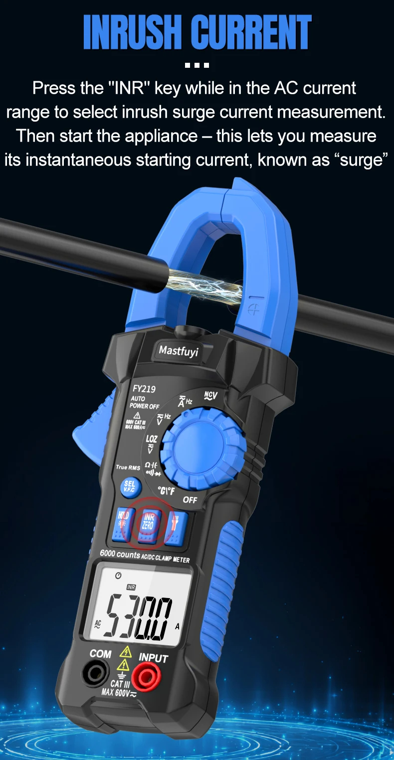 Enables the examination of startup current in motors and equipment by measuring surge current up to 600A, ensuring efficient electrical analysis.