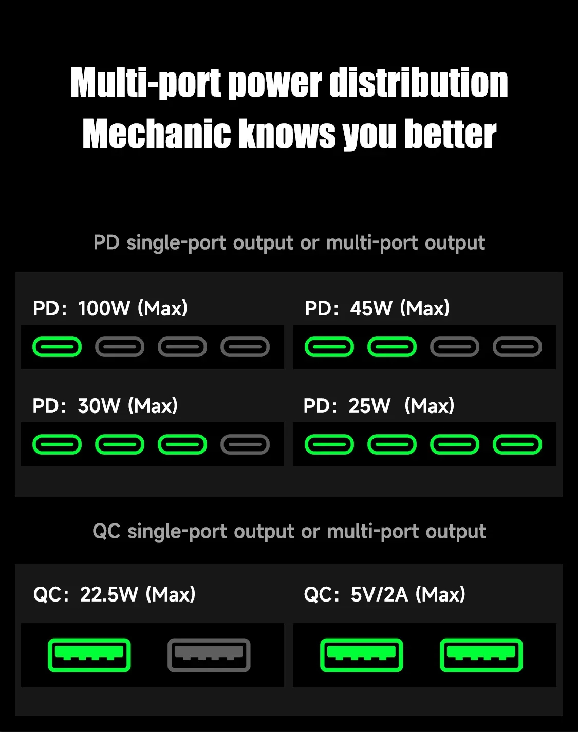 Fast Charging Ports: 8 interfaces (4 × USB-C, 4 × USB-A)