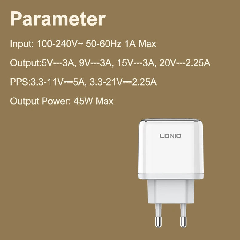 | Output | 5V/3A, 9V/3A, 15V/3A, 20V/2.25A |