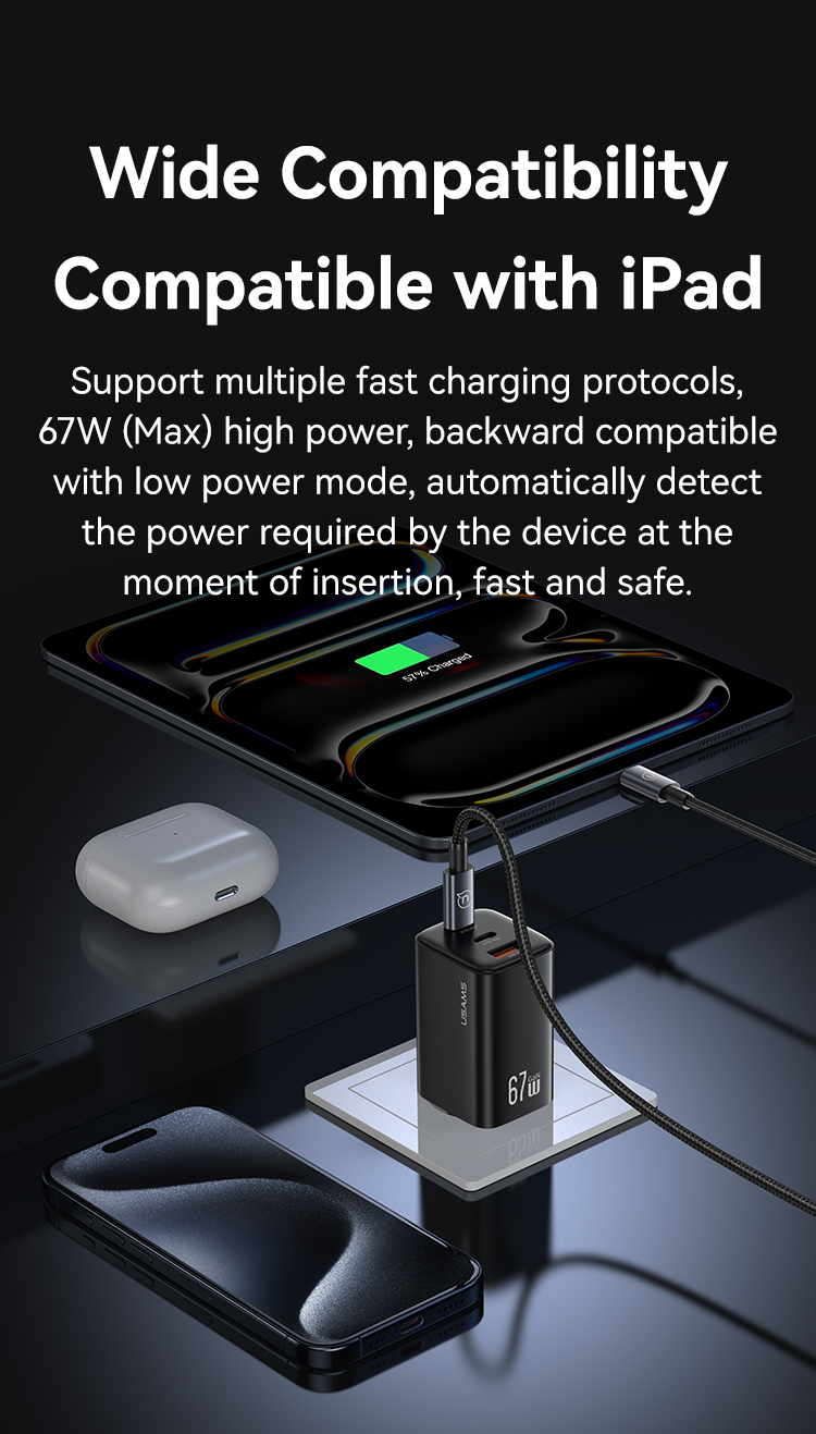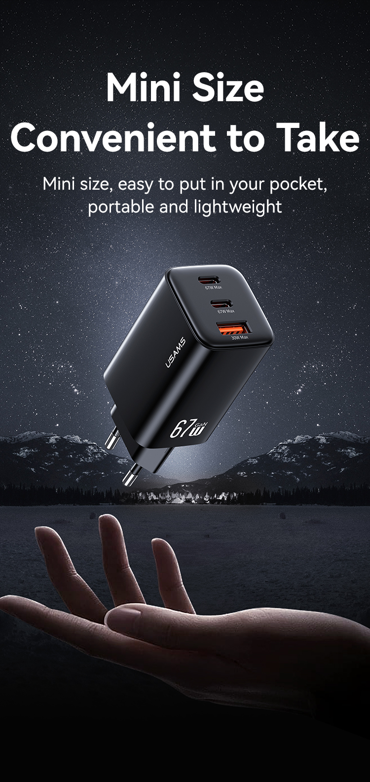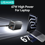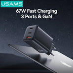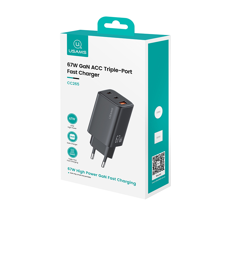 1. High Power Output: With a maximum output of 67W, the USAMS CC265 charger ensures fast and efficient charging for multiple devices simultaneously.