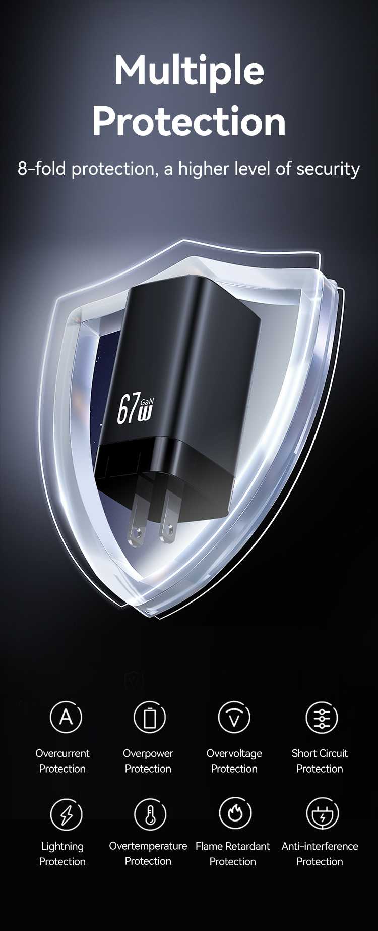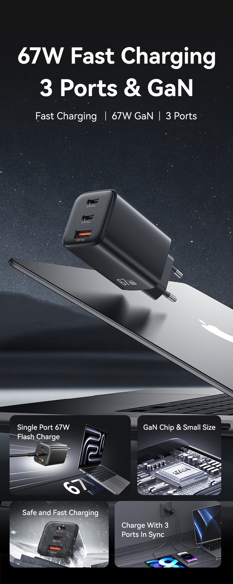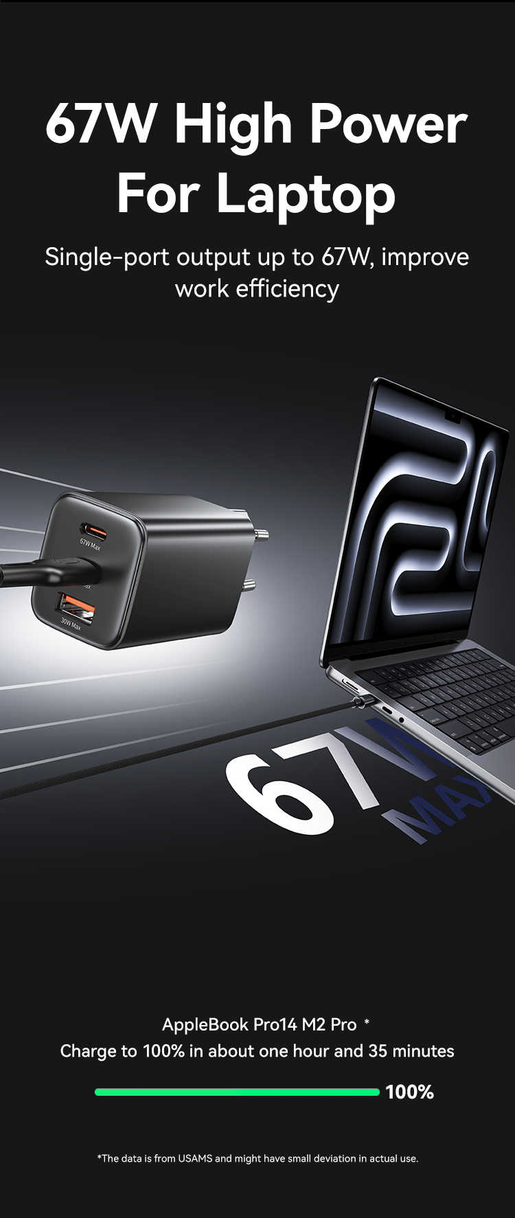 1. High Power Output: With a maximum output of 67W, the USAMS CC265 charger ensures fast and efficient charging for multiple devices simultaneously.