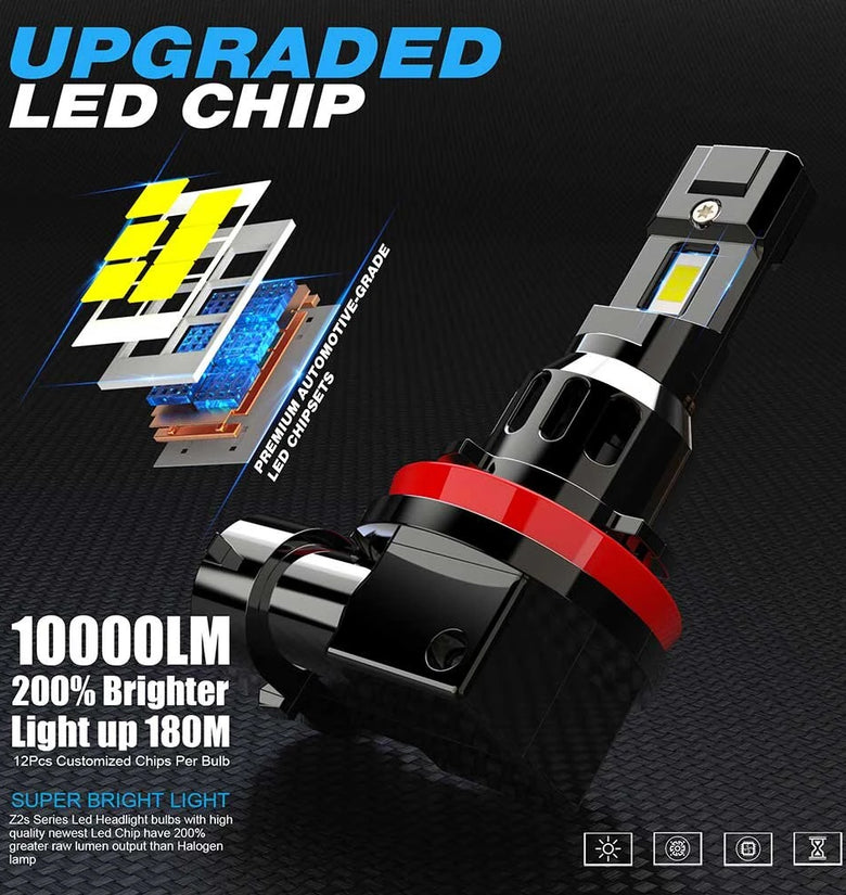 - High Brightness Output: With 10000 lumens per set and a color temperature of 6000K cool white, these LED headlights provide a 200% brighter and whiter beam compared to standard halogen lamps, significantly enhancing nighttime visibility.