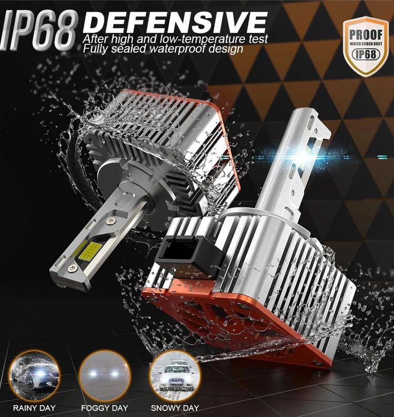 - Superior Waterproof Design: Certified with an IP68 rating, our headlights are built to withstand harsh environments, including rainy, foggy, and snowy days. The fully sealed waterproof construction ensures optimal performance under all weather conditions.