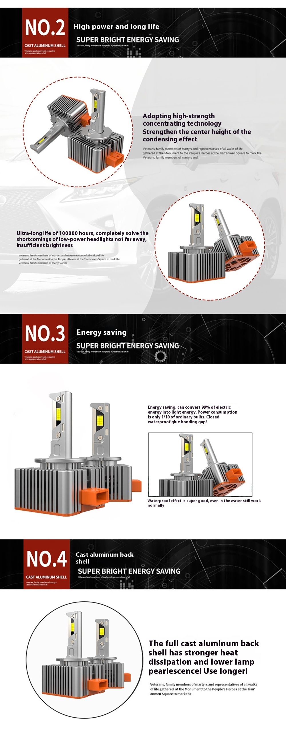 - Enhanced Heat Dissipation: Constructed with 6063 aerospace aluminum, these headlights efficiently dissipate heat, which helps maintain lower LED bead temperatures. This effective cooling mechanism extends the headlight's operational life and performance.