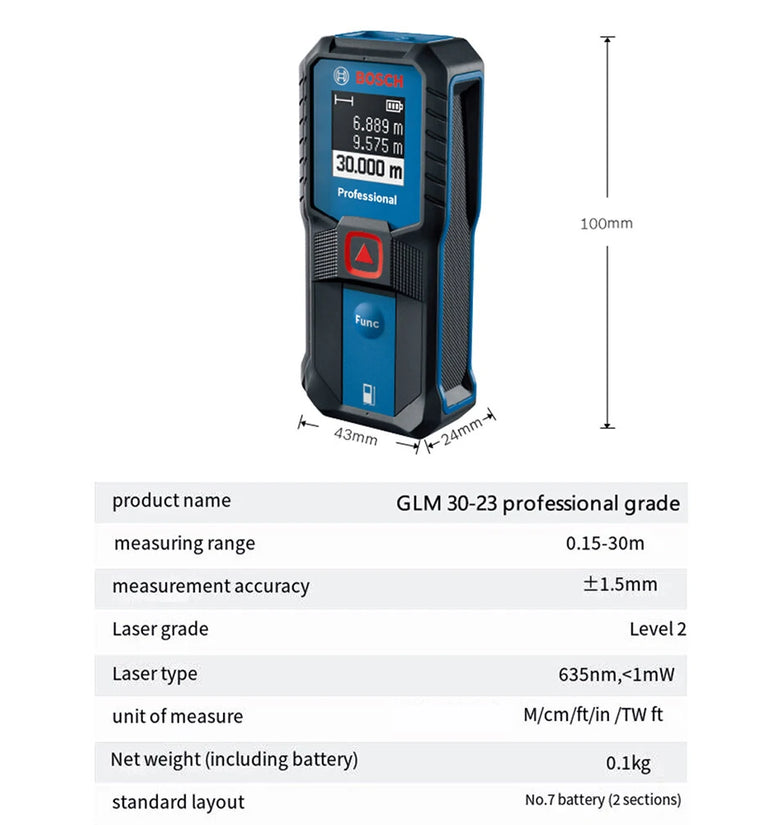 • GLM 30-23 Professional Laser Distance Meter 0.15-30m Range 1.5mm Accuracy Multi-Unit Compact Precision Tool High-Quality Measurement