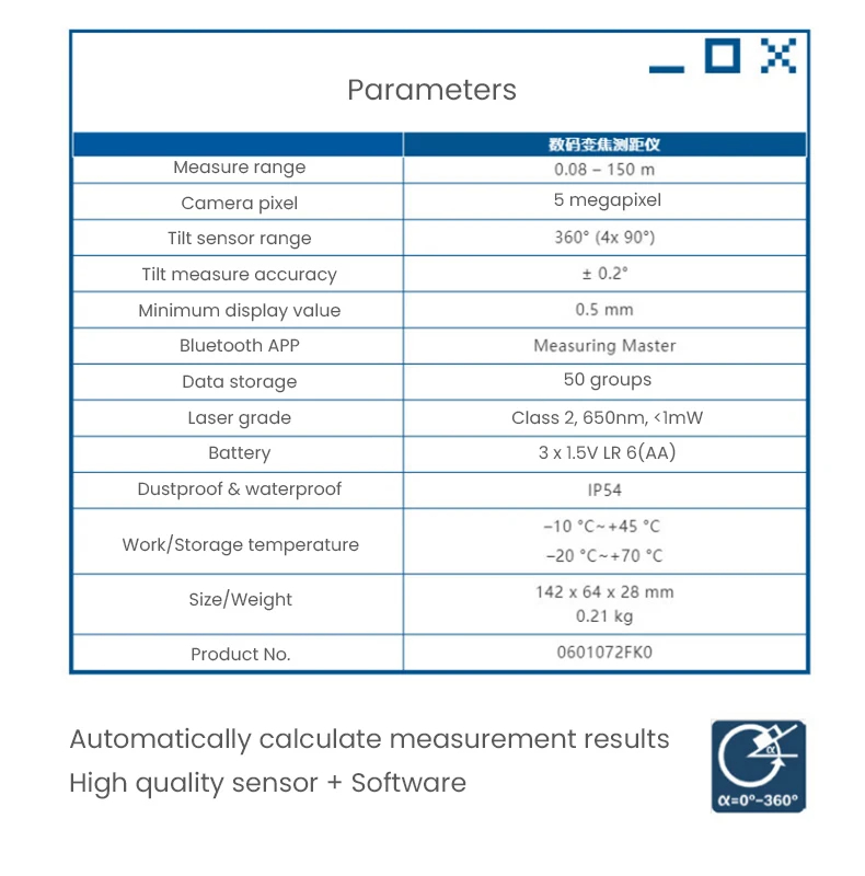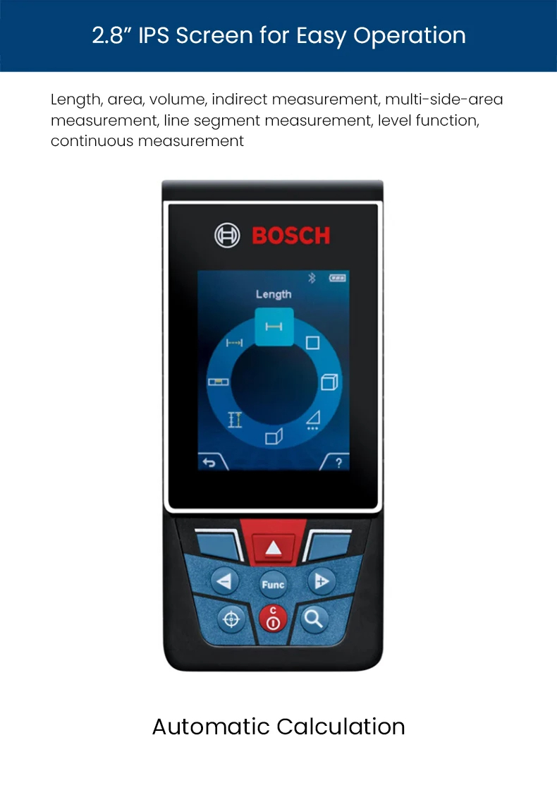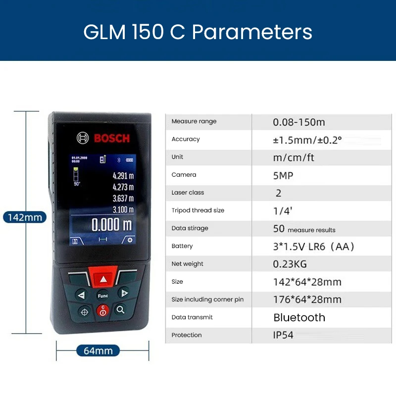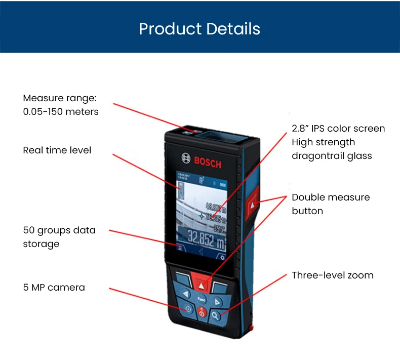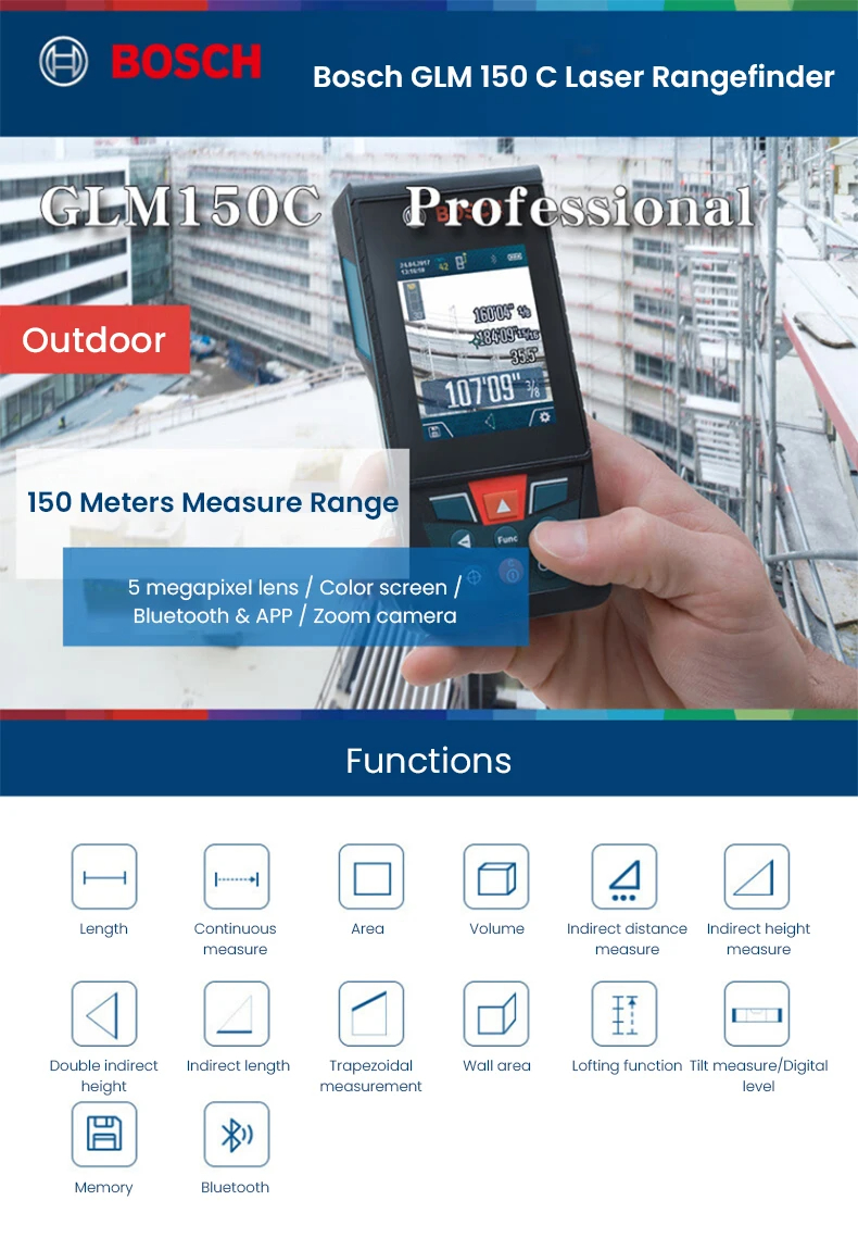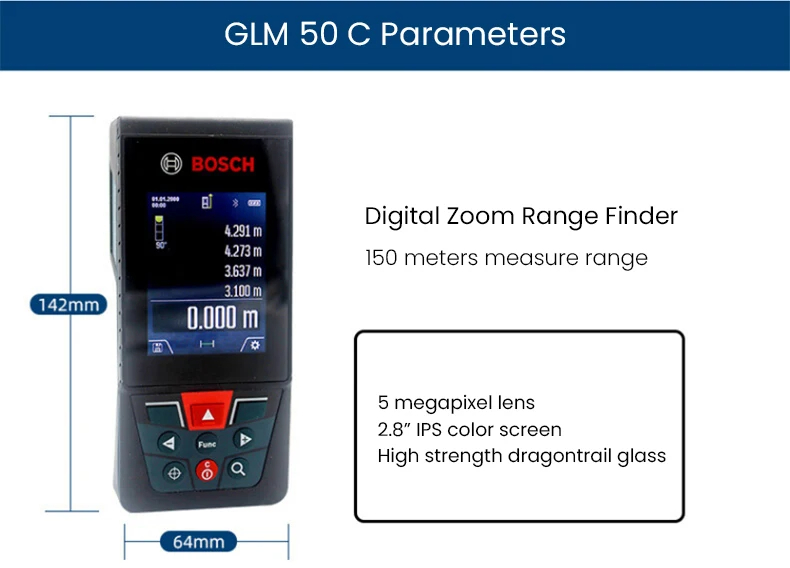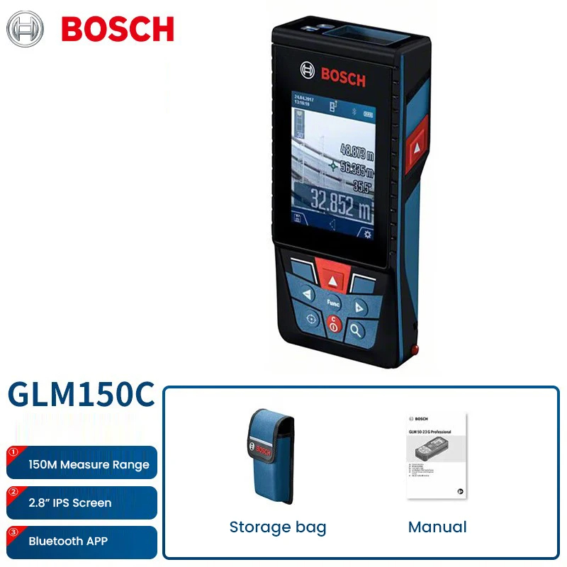 • GLM150 C Laser Rangefinder 150 Meter Range Bluetooth Enabled Measuring Master APP IP54 2.8" IPS Screen with Zoom Function