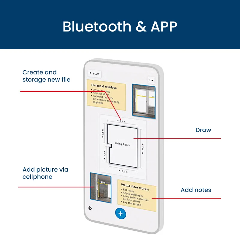 Seamlessly connect your laser rangefinder via Bluetooth to the Measuring Master APP, allowing for remote control and increased flexibility in handling measurements.
