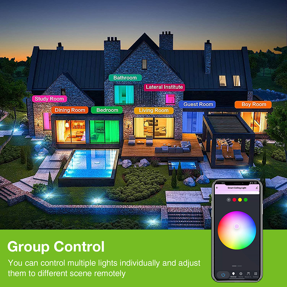 - Group Lighting Control: Manage multiple lights simultaneously or individually throughout different rooms via the mobile app. Create and assign specific lighting scenes for various occasions, ensuring consistent and tailored lighting across your home.