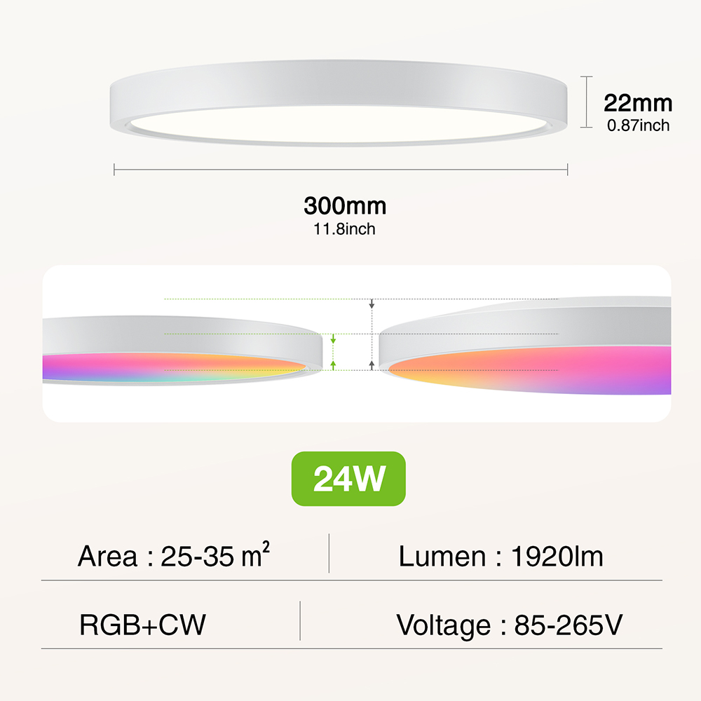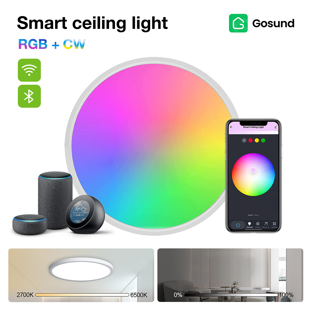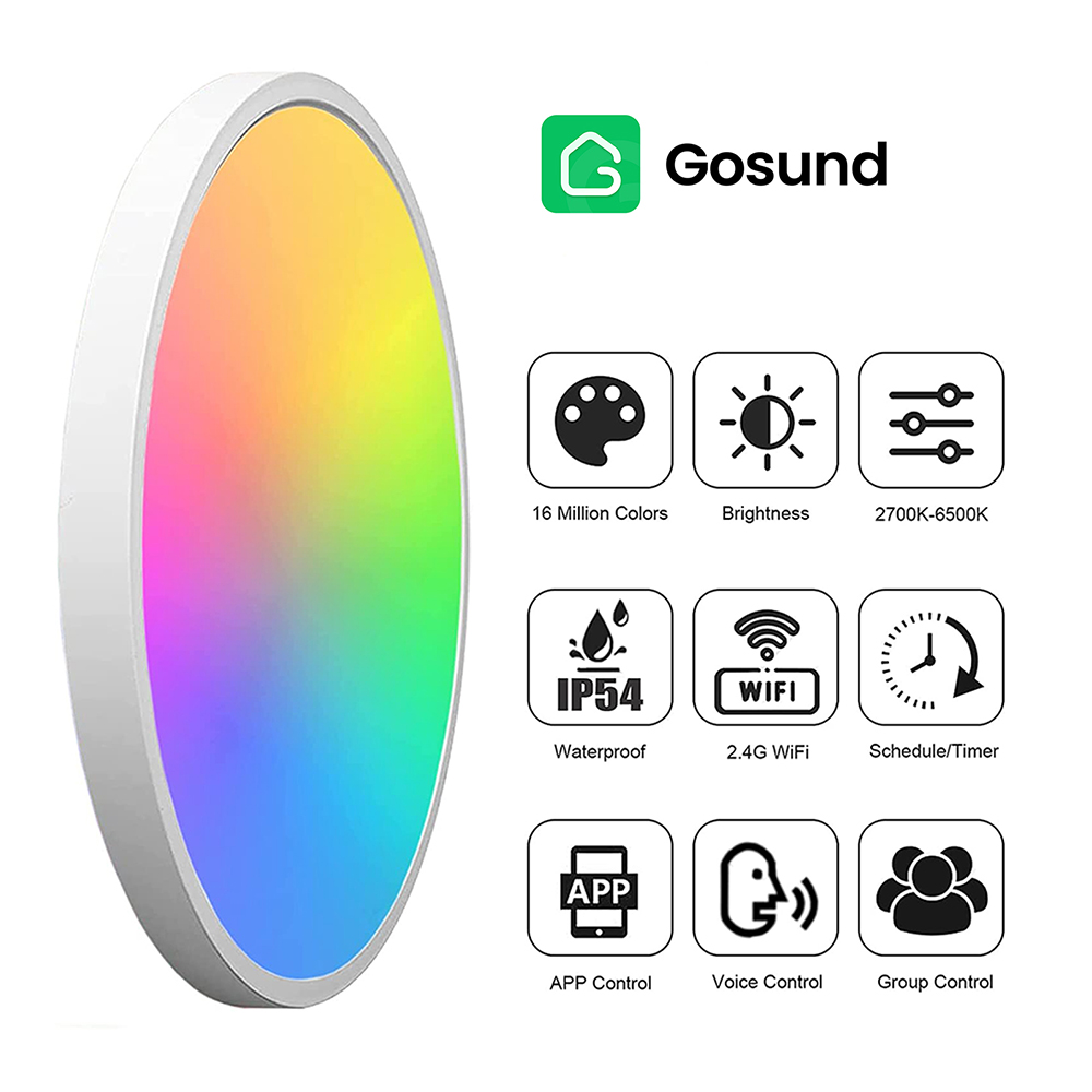 • Gosund LB12 24W LED Smart Ceiling Light 30cm Wifi Smart Celling Lamp RGB+CW 1920LM Remote Control Voice Control With Alexa & Google Home