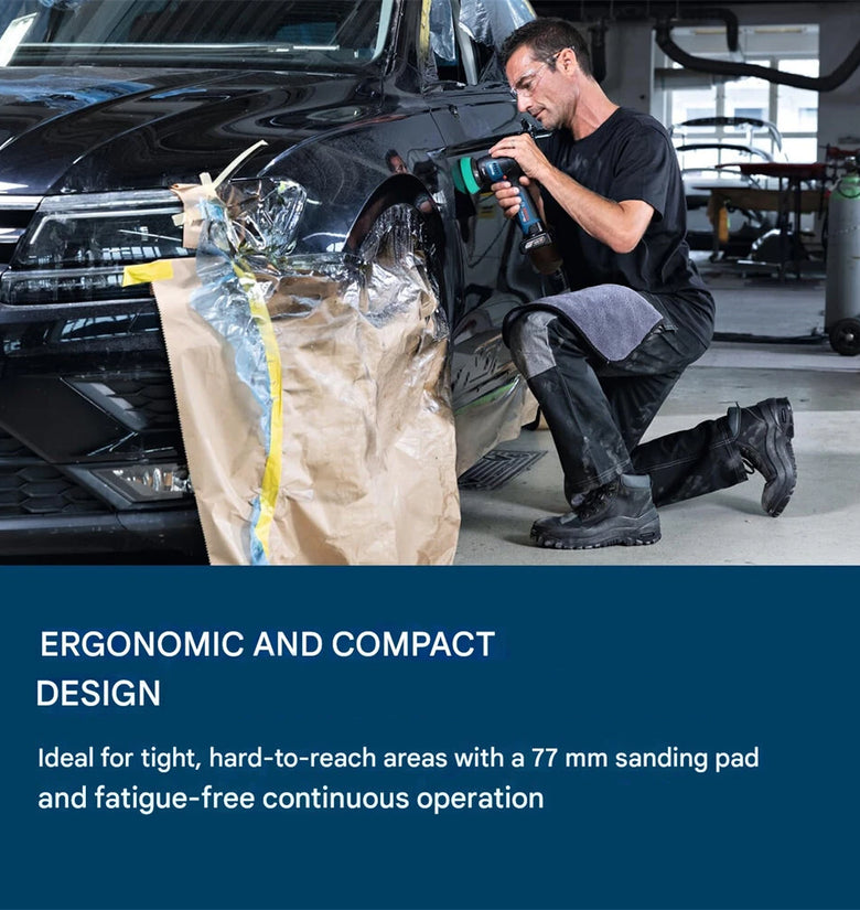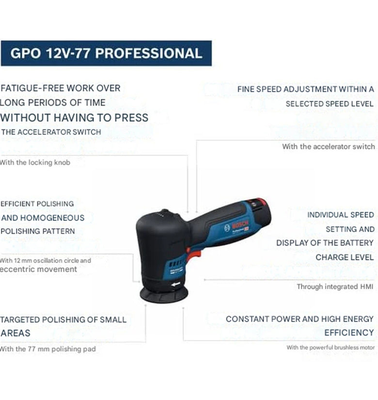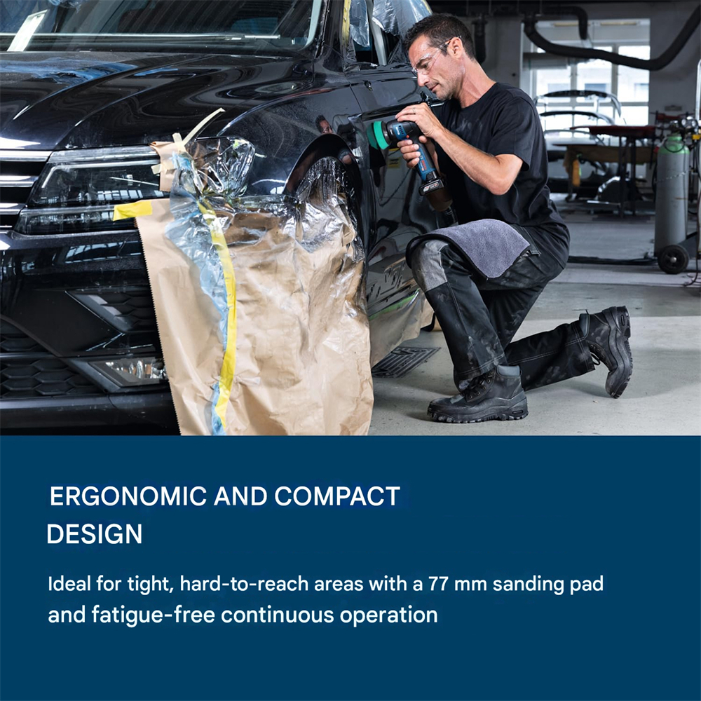 Its 77 mm backing pad is perfect for light polishing tasks in small, confined areas and hard-to-reach spaces, making it an excellent tool for detailed work.