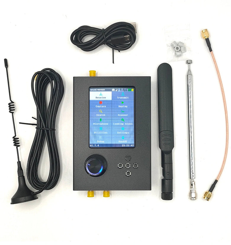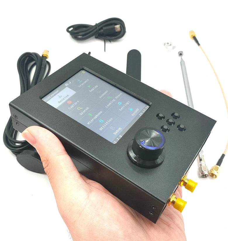 Highlights: 1. R9 version hackrf one + H2 R4 version portapack h2 2. Portapack H2 with the latest version firmware (the latest version of release firmware, and the firmware update progress is consistent with the official) flashed + HACKRF ONE 1MHz to 6GHz SDR Software Defined Radio + 0.1ppm TXCO 3. The only hardware in the world developed in collaboration with the original author! Our machines are able to support the author's official firmware and future updates to the maximum extent possible! Note: firmware needed for portapack has been flashed into the hackrf demo board. And each one has been tested before shipping. You can use it directly by just one click the knob button to boot the device.
