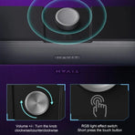 The sound bar comes with a unique knob-type design that offers a convenient way to adjust the volume- simply rotate the knob. Touch it to open the dazzling RGB light show.