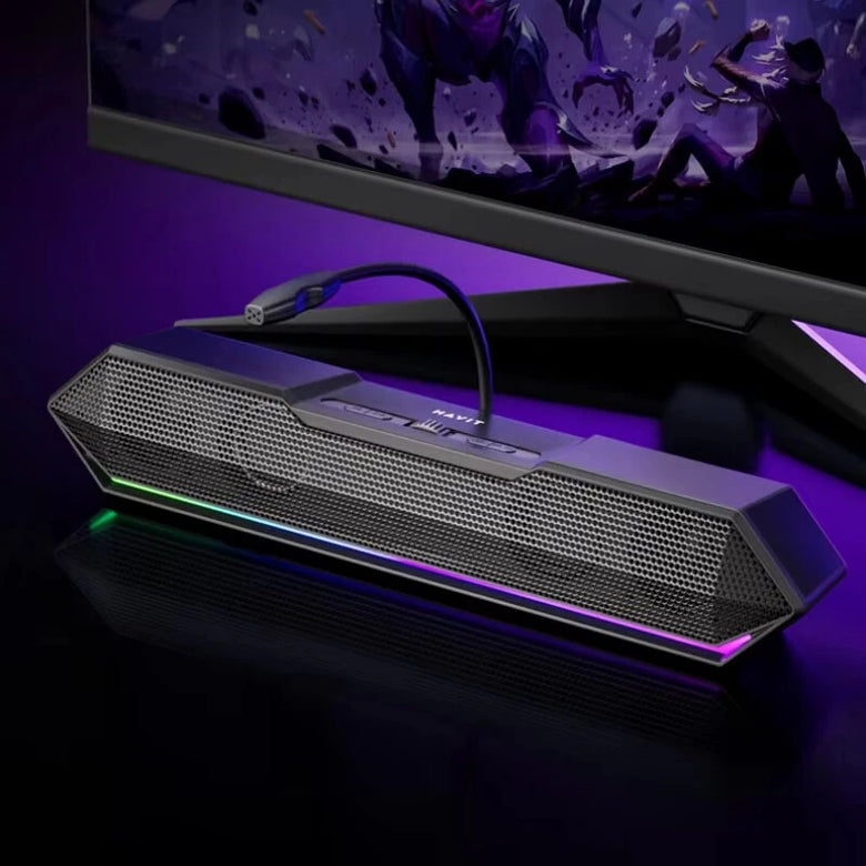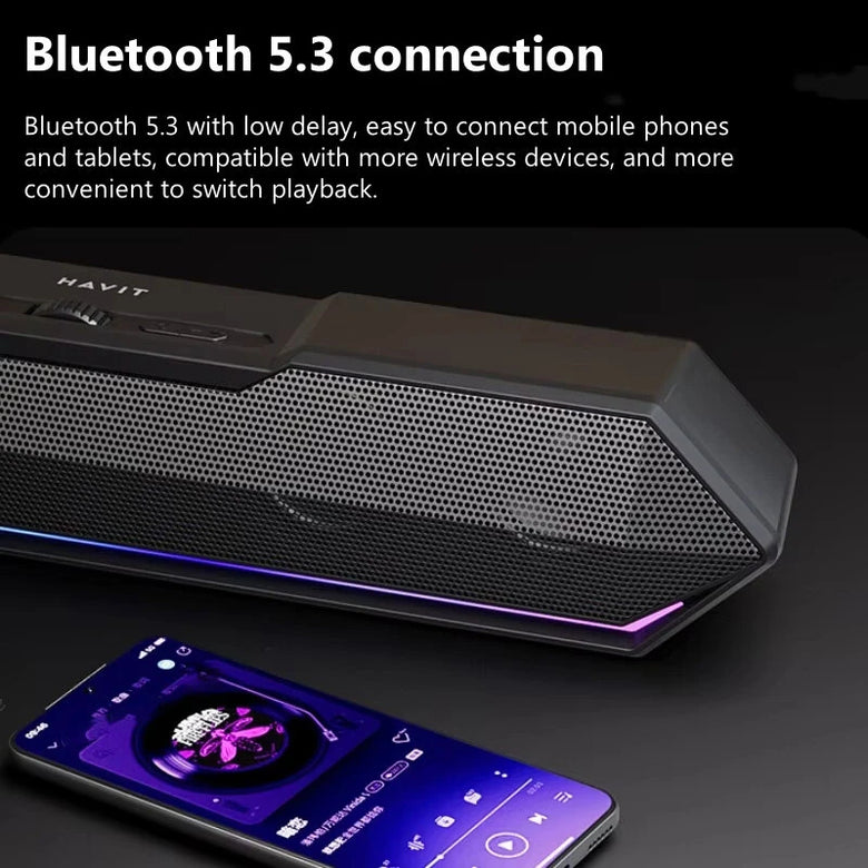 • Havit M20 Desktop Speaker Wired bluetooth Soundbar Dual Full-frequency Speakers Dual Bass Diaphragm RGB Light EQ Tunning USB Power Supply Computer Speaker with External Microphone