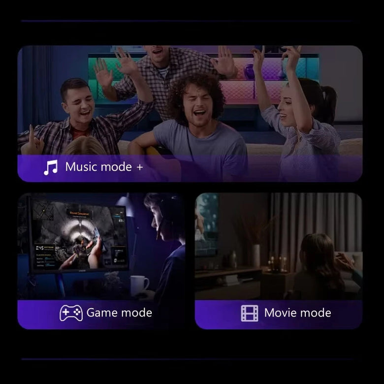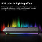 Enhance your ambiance with dynamic RGB lighting that syncs with your audio, adding a vibrant and visually stimulating element to your gaming and entertainment setup.