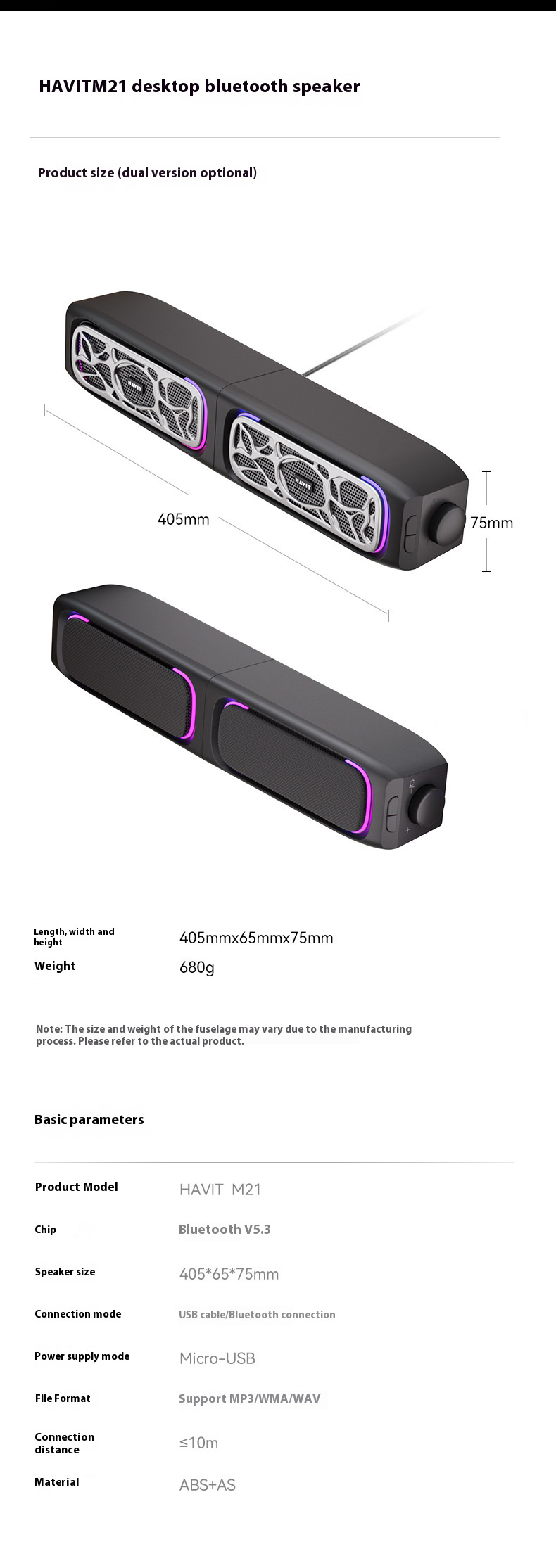 | Speaker | 2x Bass Diaphragm(66*66mm) / 2x Round Full Frequency Speaker(66*66mm) |