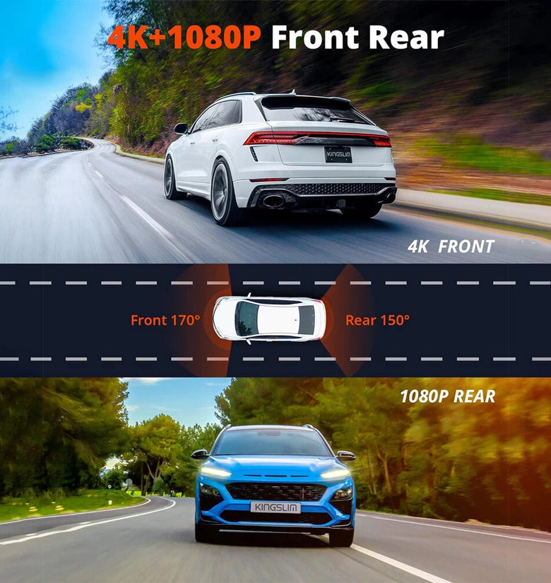 -- Clear Video Quality: Equipped with an advanced front camera with up to 3840x2160P resolution and a rear camera with 1920x1080P resolution. This combination ensures both front and rear views are captured in exquisite detail, giving you clear and vivid recordings. Whether you're capturing a scenic driving scene or a critical road incident, the HD video quality guarantees every moment is recorded clearly.