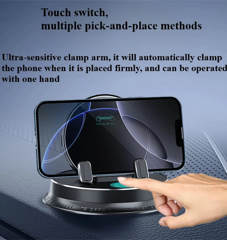 • HELLOLEIBOO Portable Smart Wireless Charging Dashboard Phone Holder 360 Degree Rotation Auto Lock Stand Universal