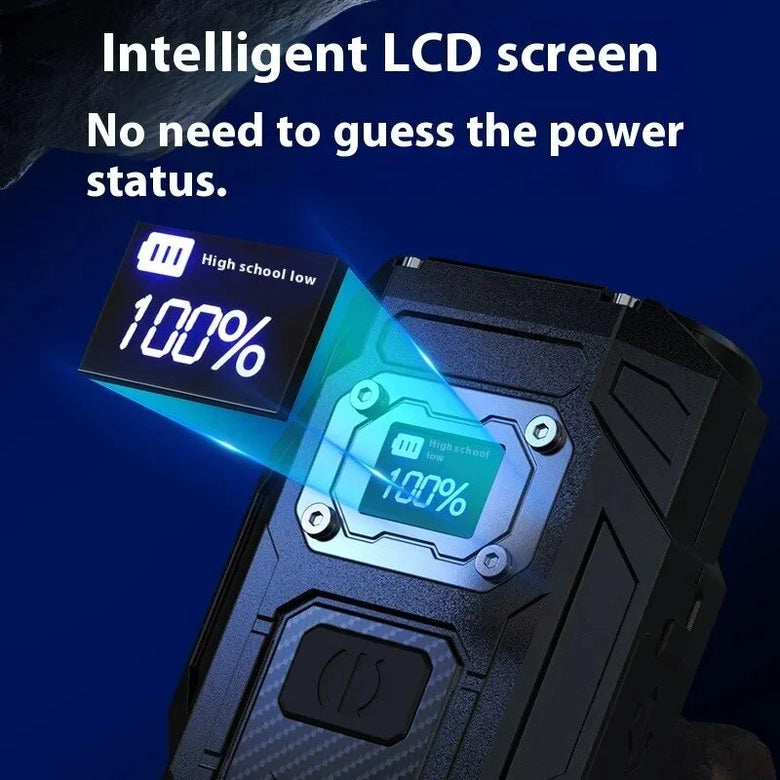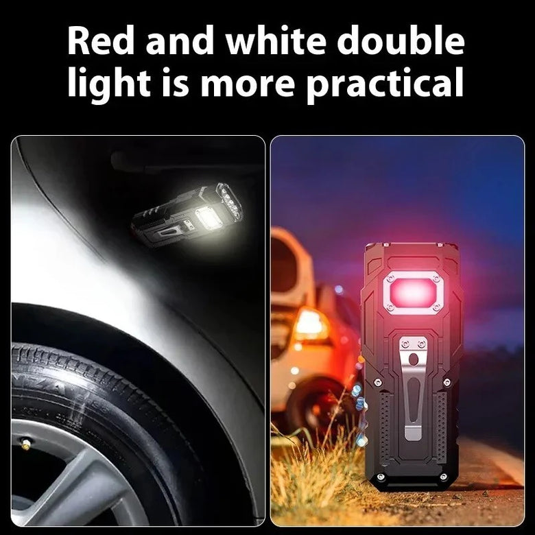 1. Strong lighting: Eight upgraded high-brightness lamp beads, the matrix-shaped structure greatly improves the brightness of the flashlight, the light is more concentrated, and the long-range performance is stronger.2. Red and white dual light is more practical: the side is equipped with a red and white dual-color source COB lamp light source, a large range of scattered light lighting, white light is high-brightness, and red light has super strong penetration3. Real-time monitoring of remaining power: multi-directional display intelligent LCD power display screen, the remaining power-current gear is clearly displayed to avoid overcharging and over-discharging of the battery, and to understand the remaining power in real time.4. Portable use: The tail is equipped with a strong magnetic function, which can be adsorbed on the metal surface at will, supports multi-dimensional angle adjustment, and is equipped with a metal clip on the back, which does not take up space and can be clipped anywhere. Flexible application in emergency maintenance, night operations, daily lighting and outdoor camping lights.