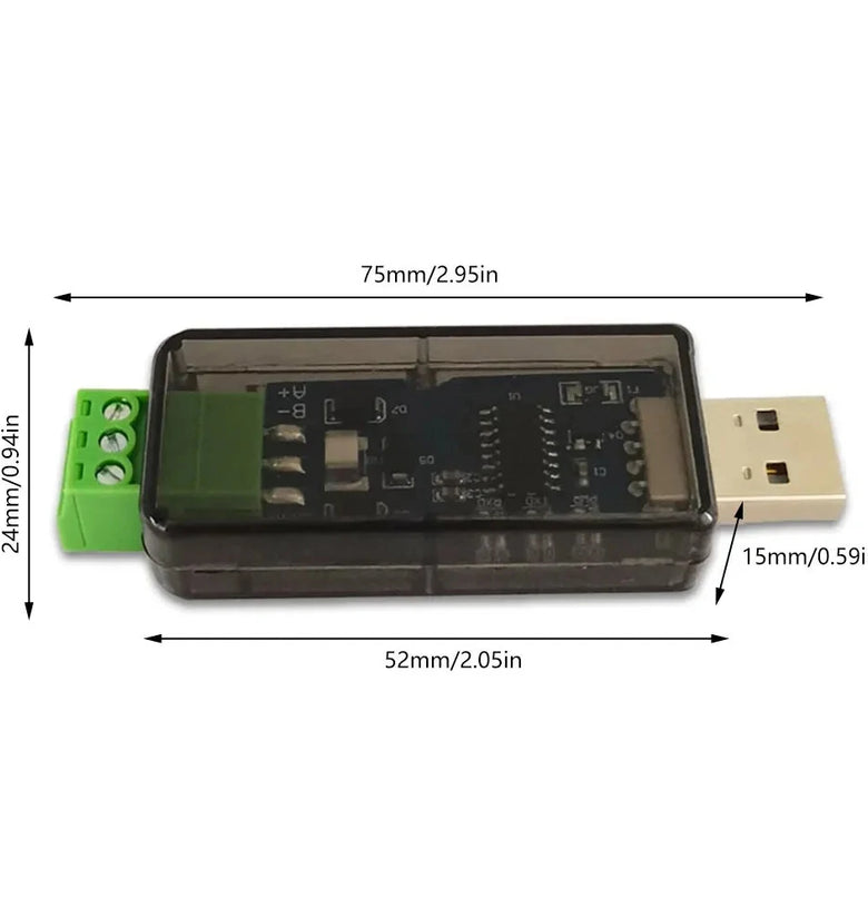 The USB to RS485 module adopts a CH343G chip and supports half duplex signal transmission between USB and RS485, with a transmission distance of up to 1200 meters (tested at 9600bps). It is equipped with a board mounted self recovery fuse and transient suppression diode, and is equipped with signal transmission indicator lights. It has advantages such as lighting protection, anti-static, overcurrent and overvoltage protection, long-distance transmission, low signal transmission delay and low power consumption, and stable and safe communication.